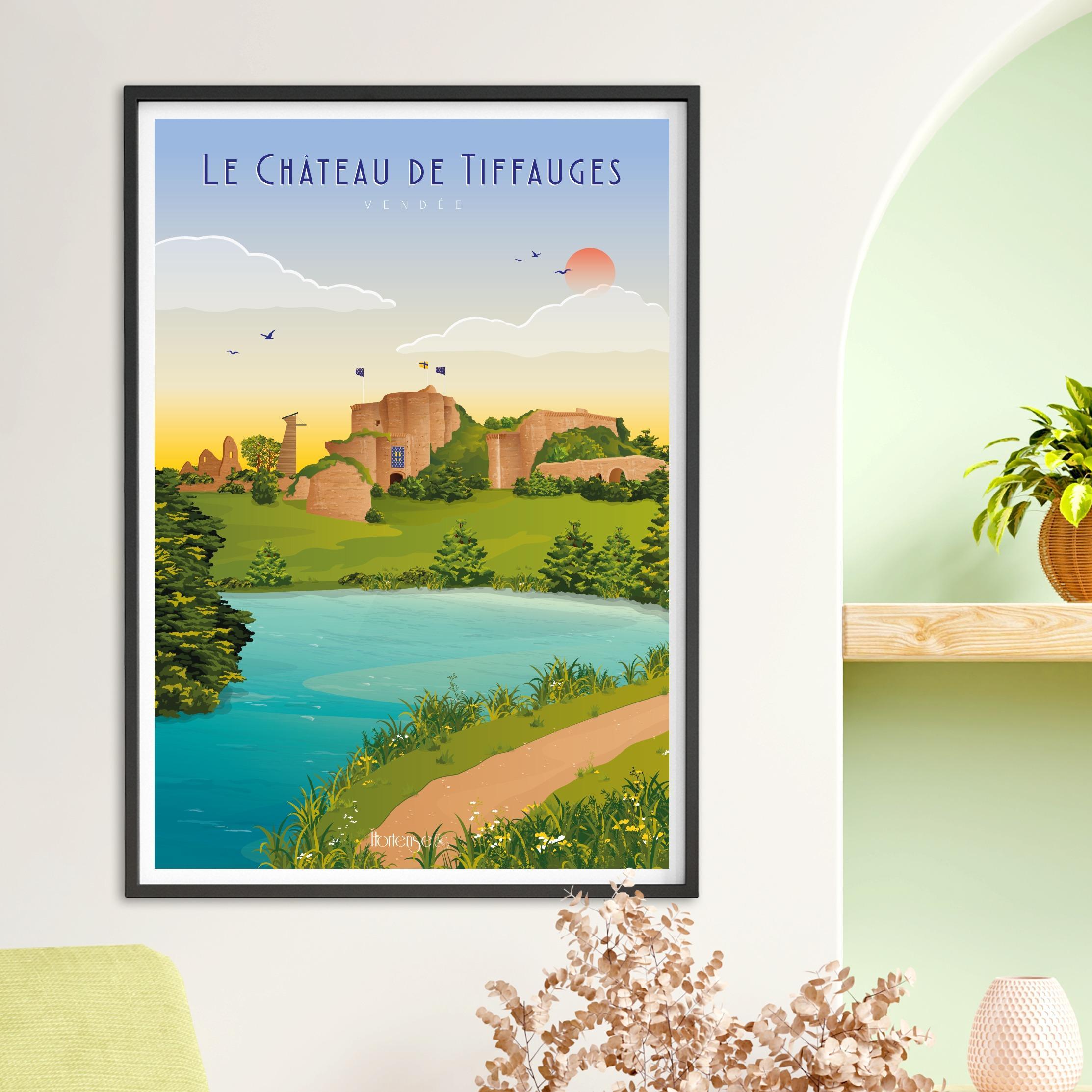 L’affiche du Château de Tiffauges est une magnifique représentation de l’un des plus célèbres châteaux de France. Également connu sous le nom de Château de Gilles de Rais, ce monument historique date du XIIe siècle et a été la propriété de l’un des plus célèbres seigneurs de guerre de l’époque, Gilles de Rais. Le château a été construit en pierre et en bois, avec des fortifications pour se défendre contre les ennemis et les invasions ennemies. Il a été utilisé pendant de nombreuses années comme une forteresse stratégique, protégeant la ville de Tiffauges et les environs.