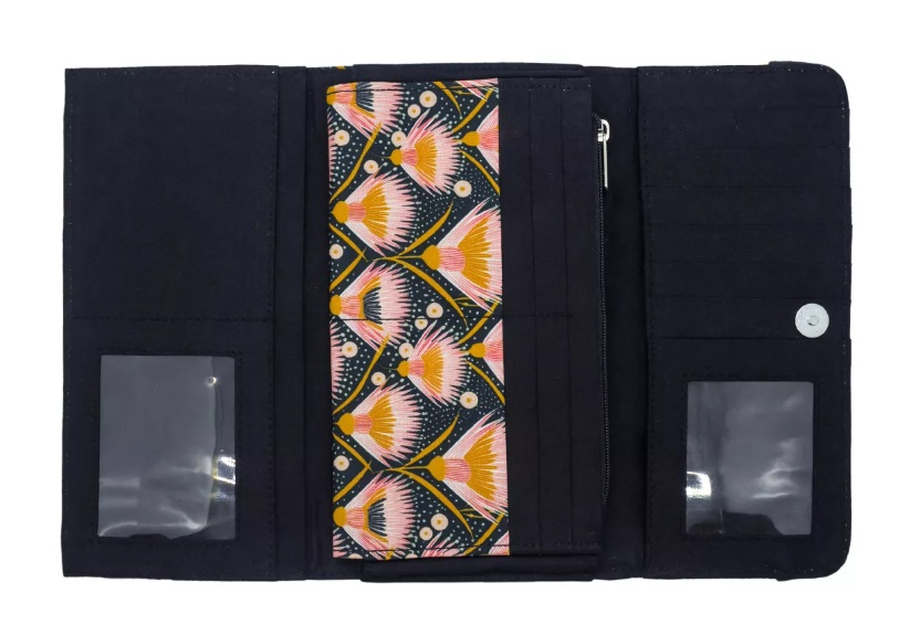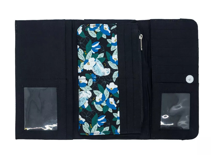 Avec son extérieur en tissu imprimé et son intérieur en coton uni, il offre une touche d’originalité tout en restant élégant. Sa structure rigide garantit une tenue parfaite et une bonne résistance à l’usage. Grâce à son format généreux, doté de 13 compartiments pour cartes (dont 1 plus grand pour le permis ou la carte d’identité), 2 compartiments photo, d’une triple poche à soufflet pourvue d’une partie zippée pour les pièces, de 2 grandes poches plaquée pour y glisser un chéquier, billets .. tout en restant compact pour être glissé dans un sac à main. Son fermoir magnétique permet une ouverture et une fermeture faciles tout en sécurisant son contenu.