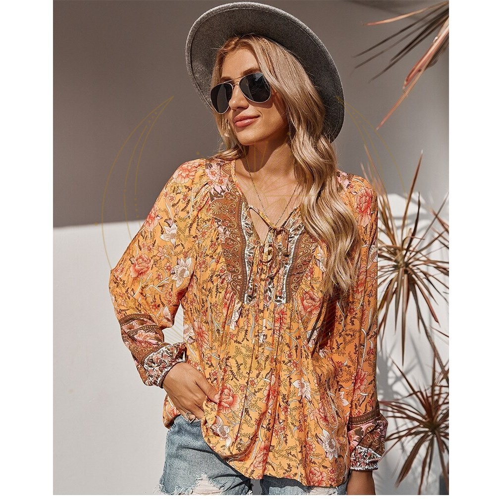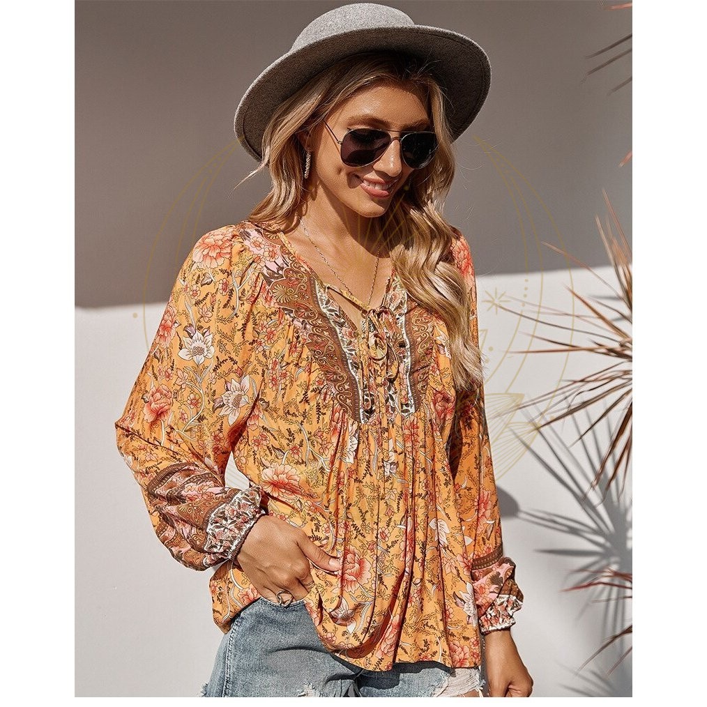 Avec cette blouse bohème orange, laissez vous envoûter par le style bohème. En revêtant cette magnifique blouse pour femme, vous permettez à votre magnifique personnalité de femme libre et autonome de s’exprimer pleinement.