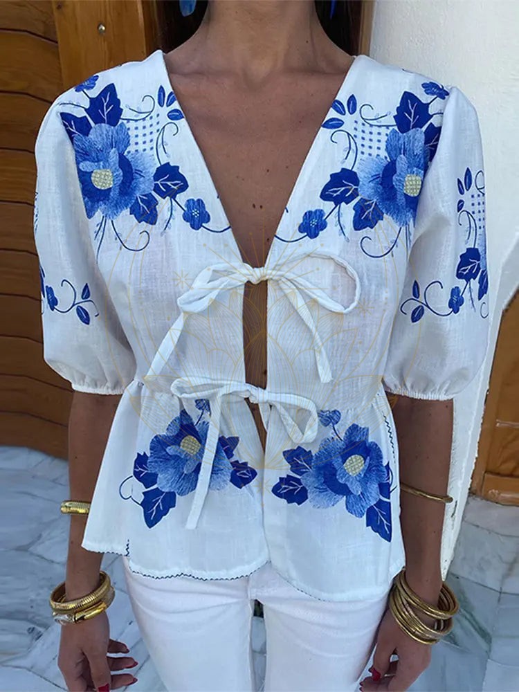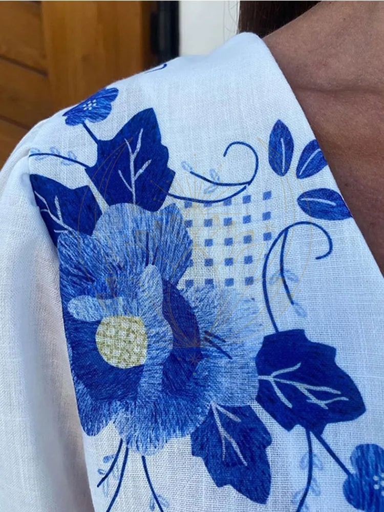 Confectionnée dans une matière aérienne et agréable, elle offre une sensation de confort tout au long de la journée. Ornée de superbes motifs floraux bleus, elle apporte une note de fraîcheur et de féminité à votre style, permettant de briller avec élégance.