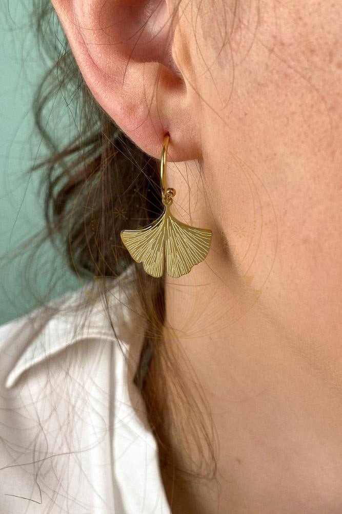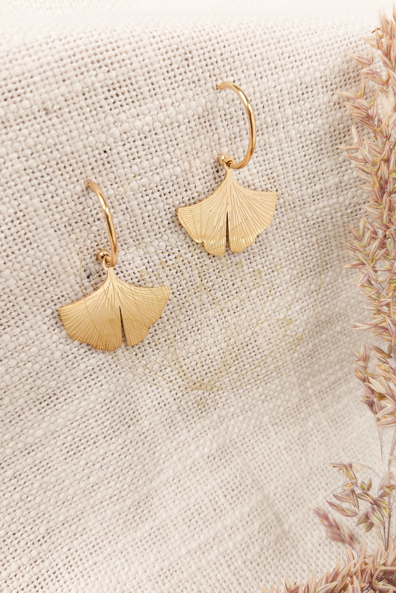Boucles d’oreilles dorées en forme de feuilles de ginkgo bohèmes
