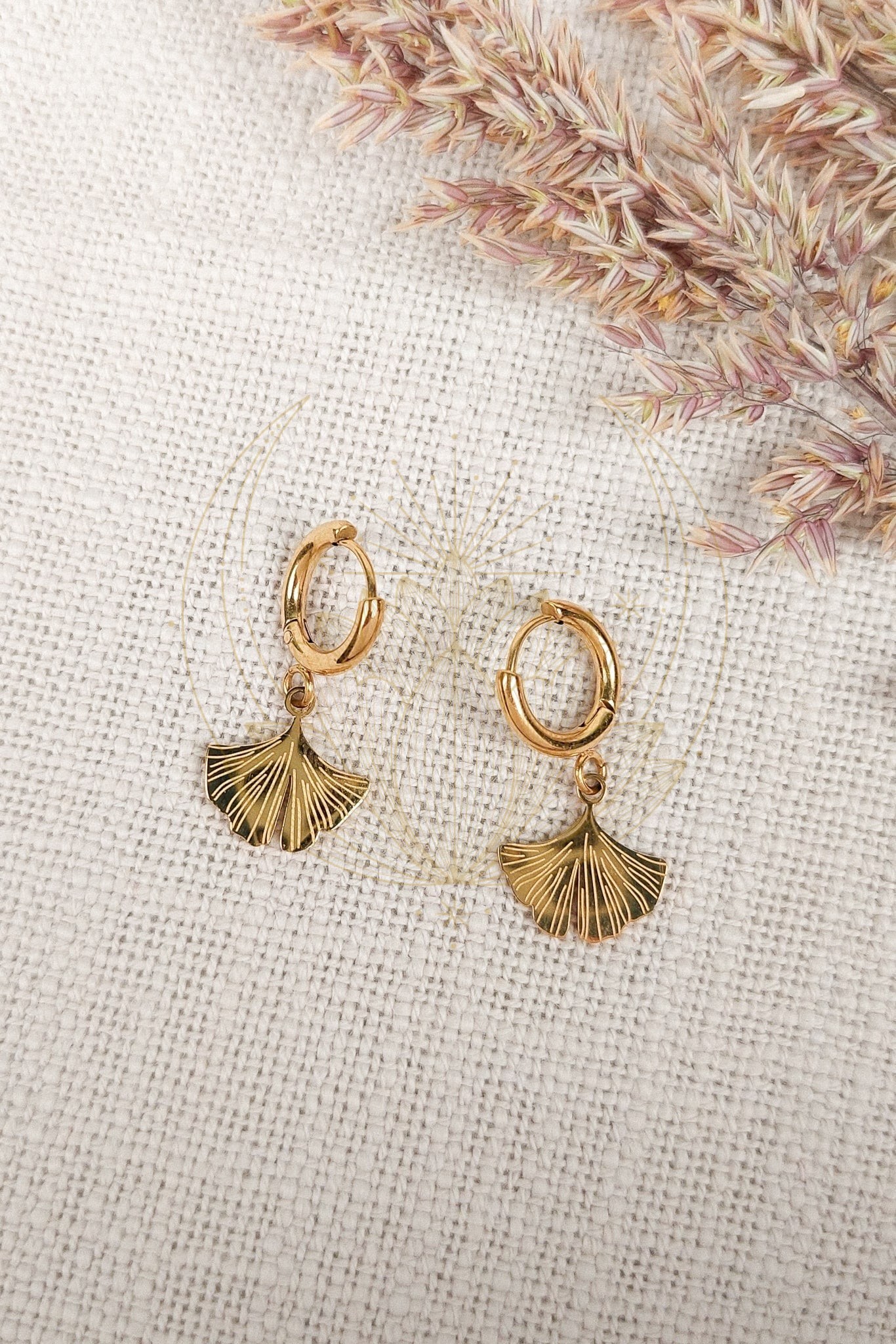 Boucles d’oreilles en forme de feuille de gingko dorée