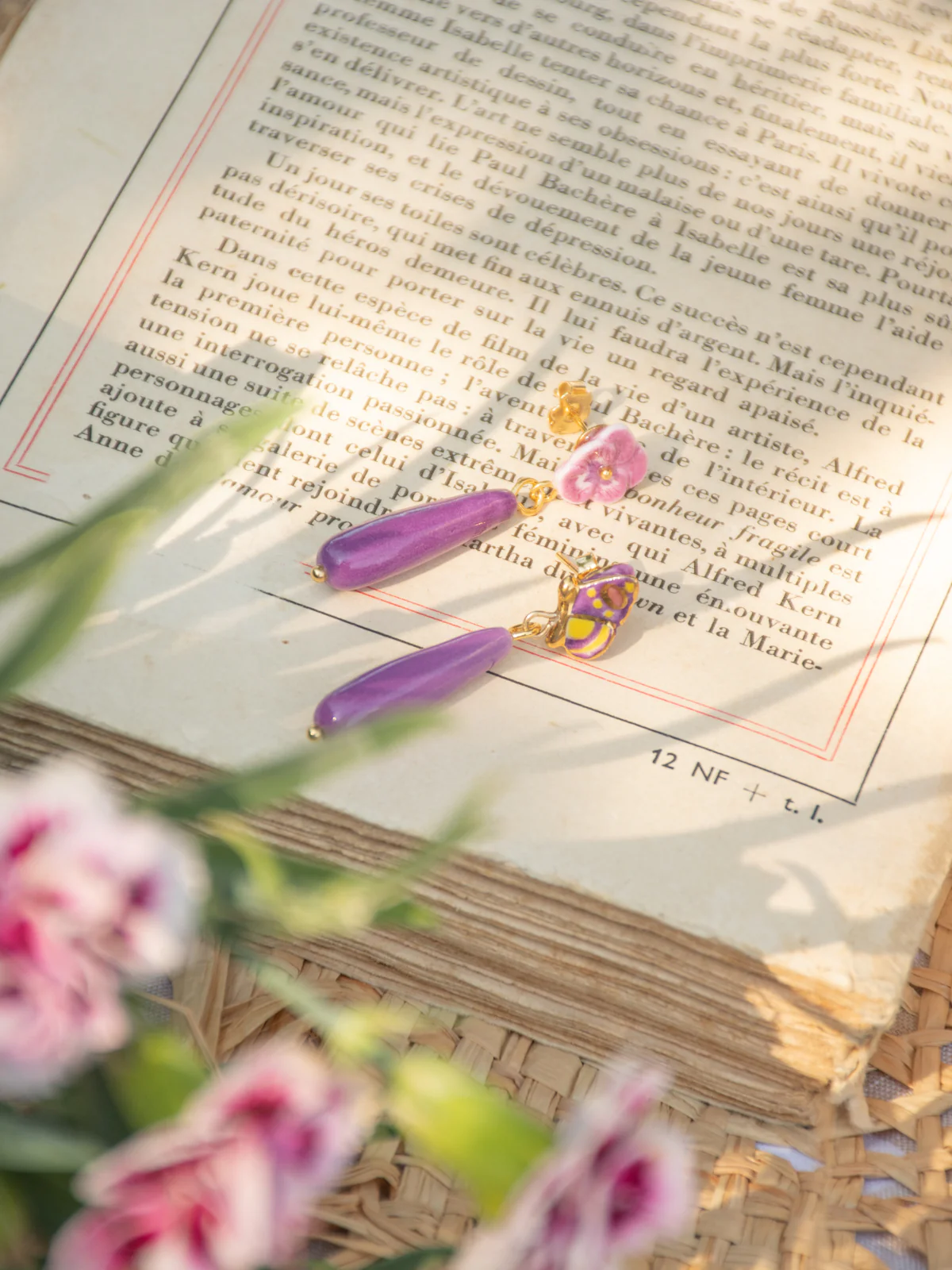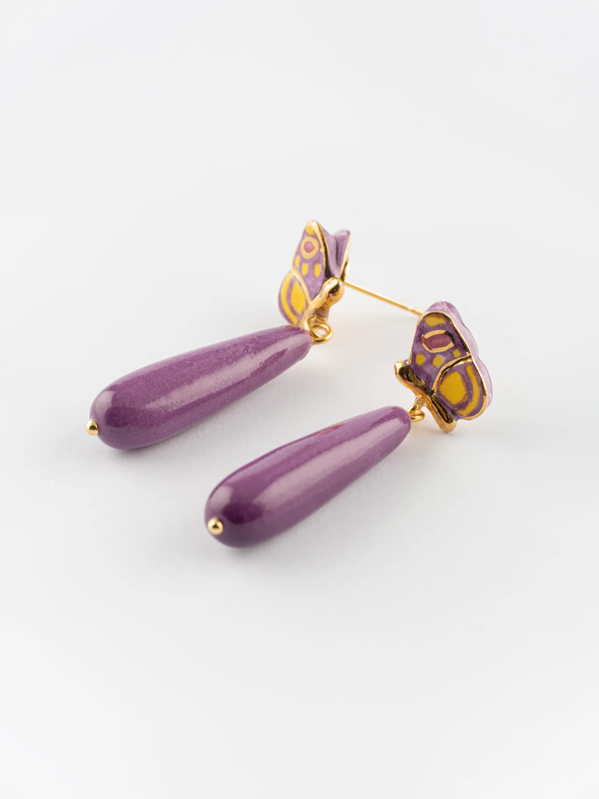 Boucles d’oreilles en porcelaine et laiton doré à l’or fin. Métal certifié sans nickel et sans risque d’allergie provenant d’Italie.