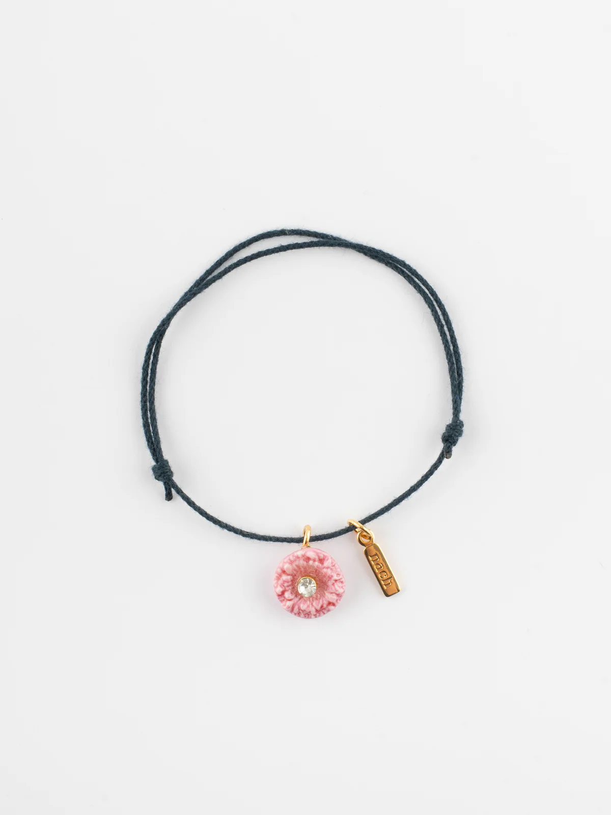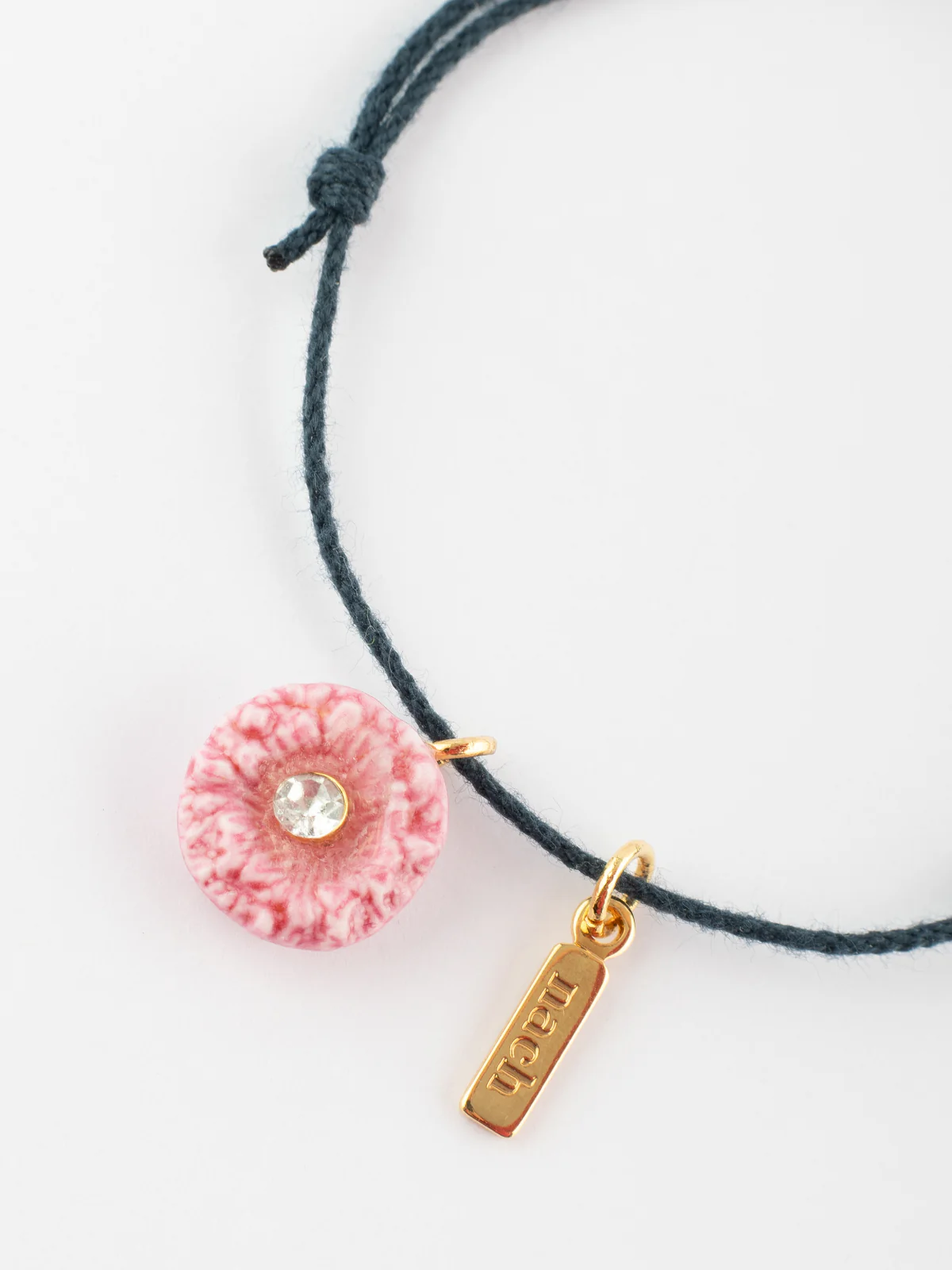 Bracelet en porcelaine, perles de verre et laiton doré à l’or fin. Métal certifié sans nickel et sans risque d’allergie.