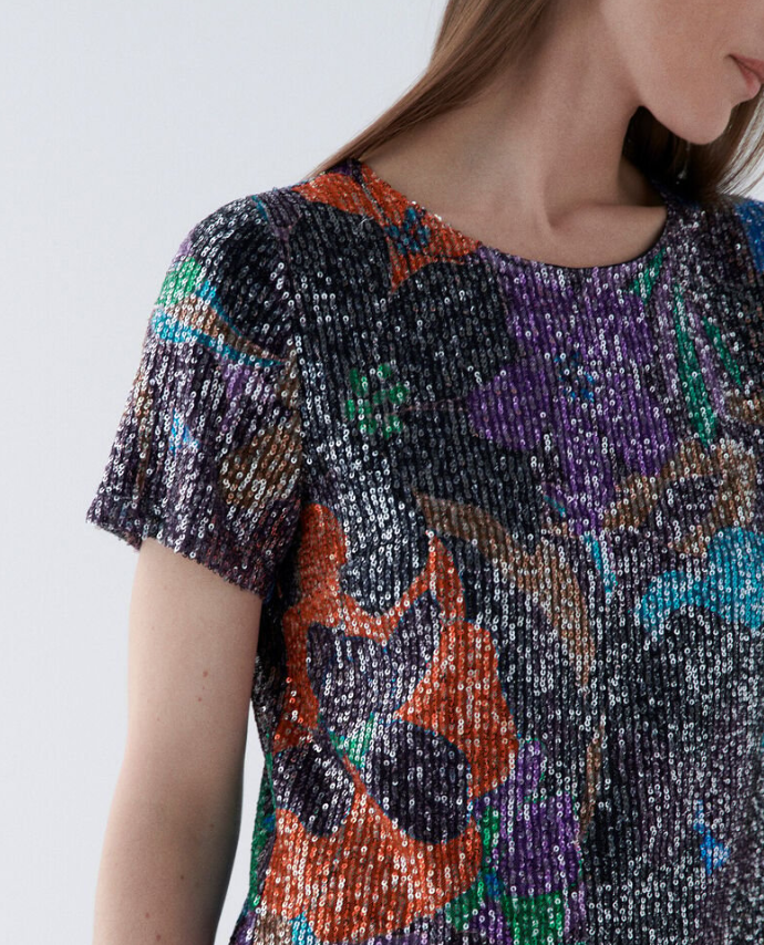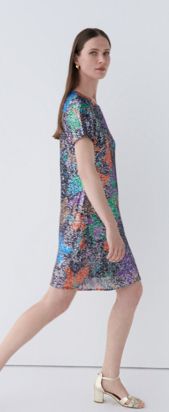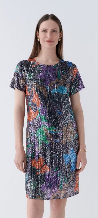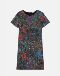 Craquez pour la robe ramila, un modèle orné de sequins laissant apparaître un délicat motif abstrait. Sa coupe courte et droite saura ravir toutes les silhouettes.