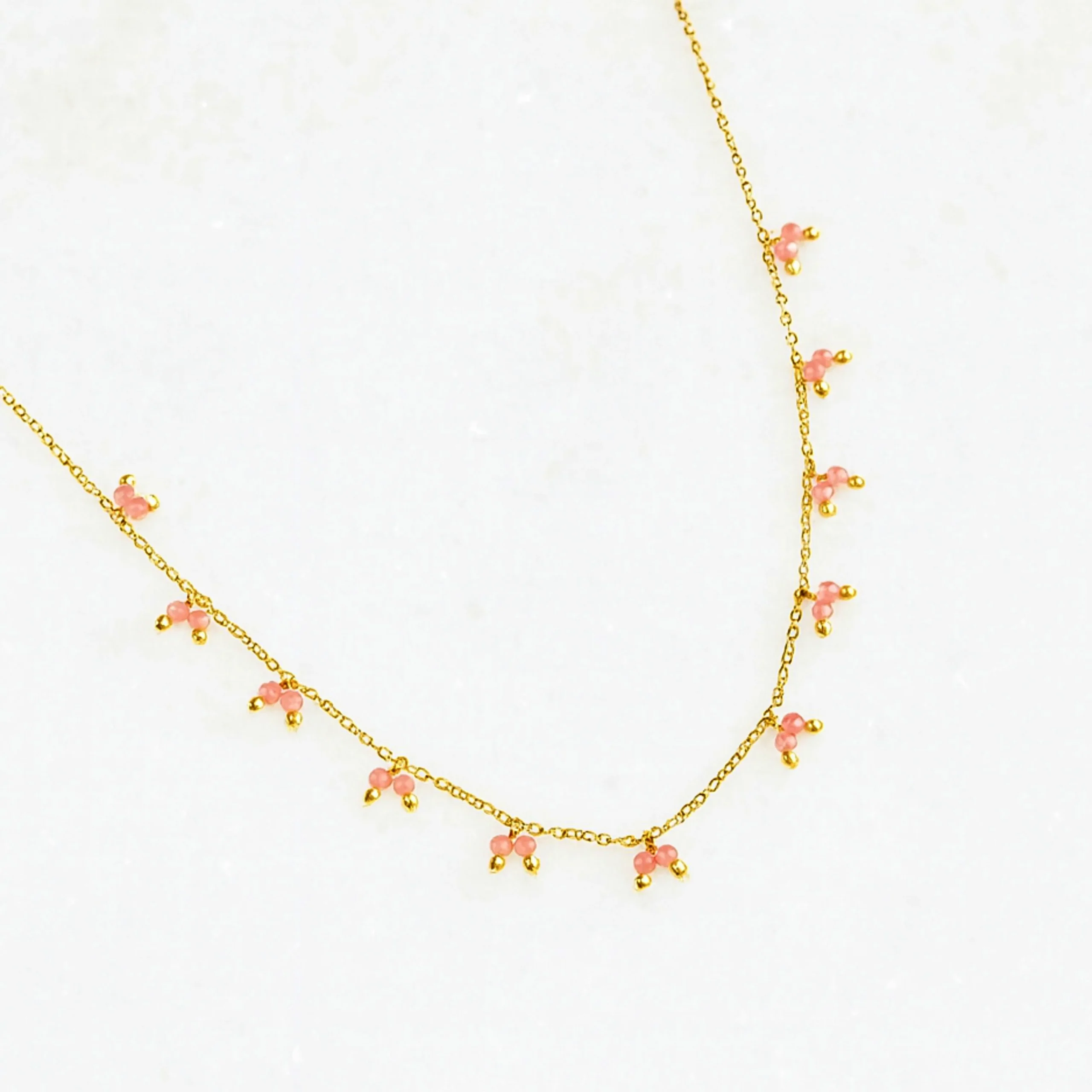Des bijoux de haute qualité : Collier en acier inoxydable et pierres naturelles en Quartz rose