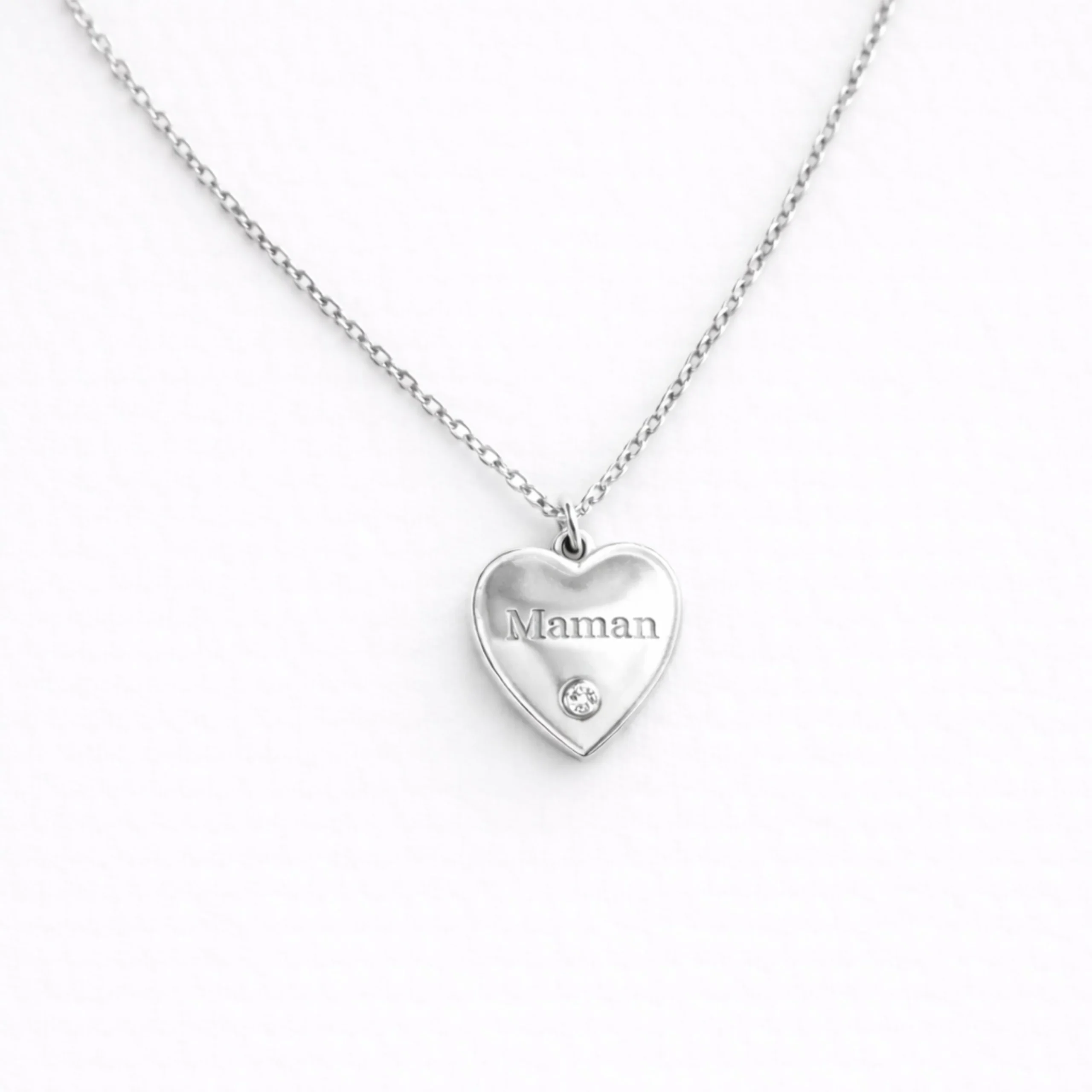 Des bijoux de haute qualité : collier en forme de cœur gravé « Maman » en acier inoxydable