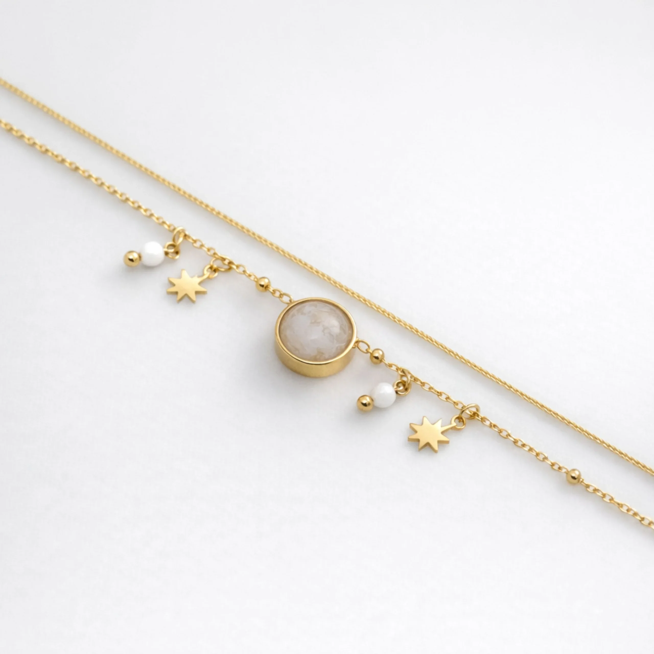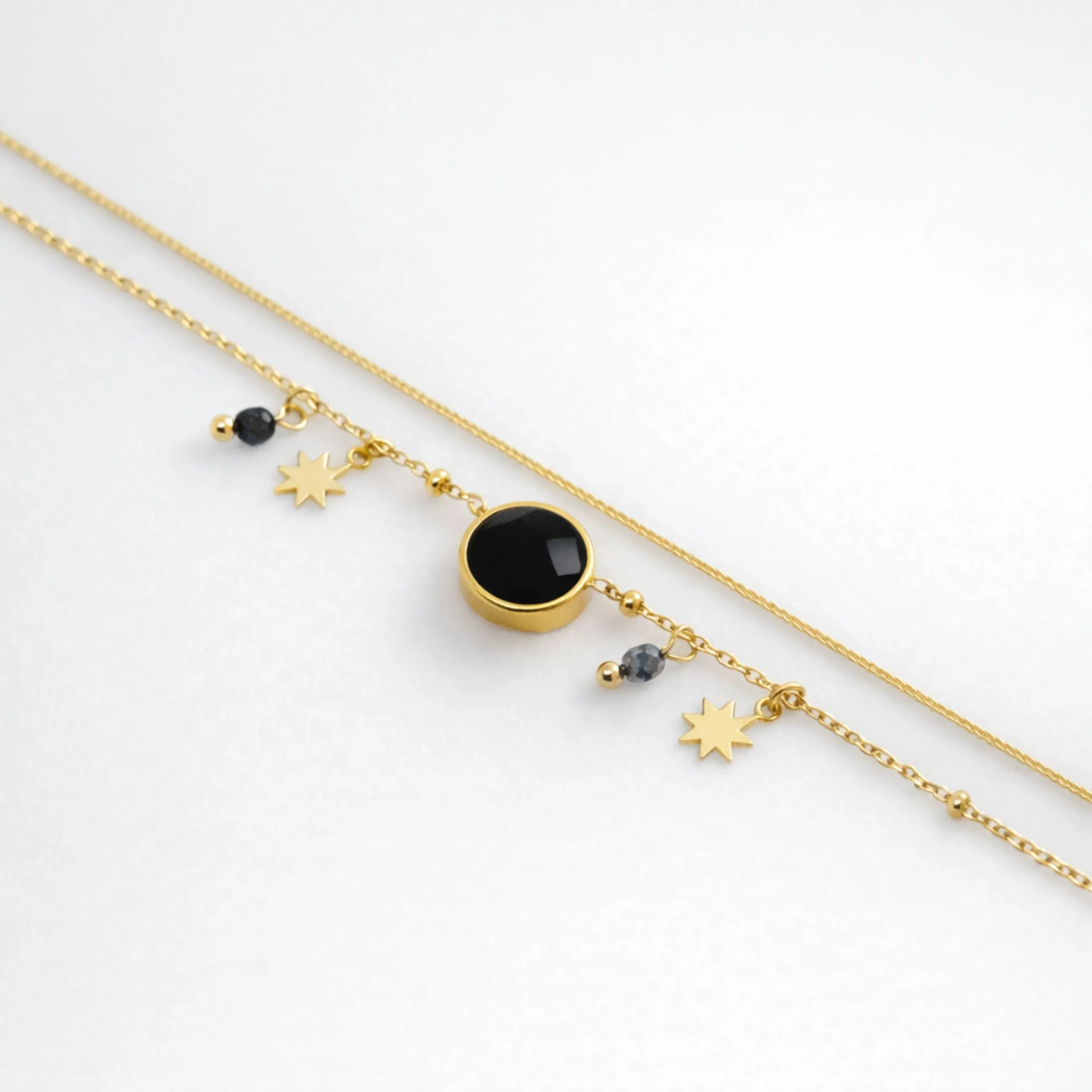 Des bijoux de haute qualité : Double Bracelet en acier inoxydable et pierres naturelles