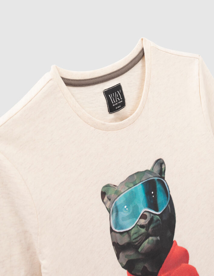 Tee-shirt beige chiné visuel « Ours Camouflage » _ XW10176-15