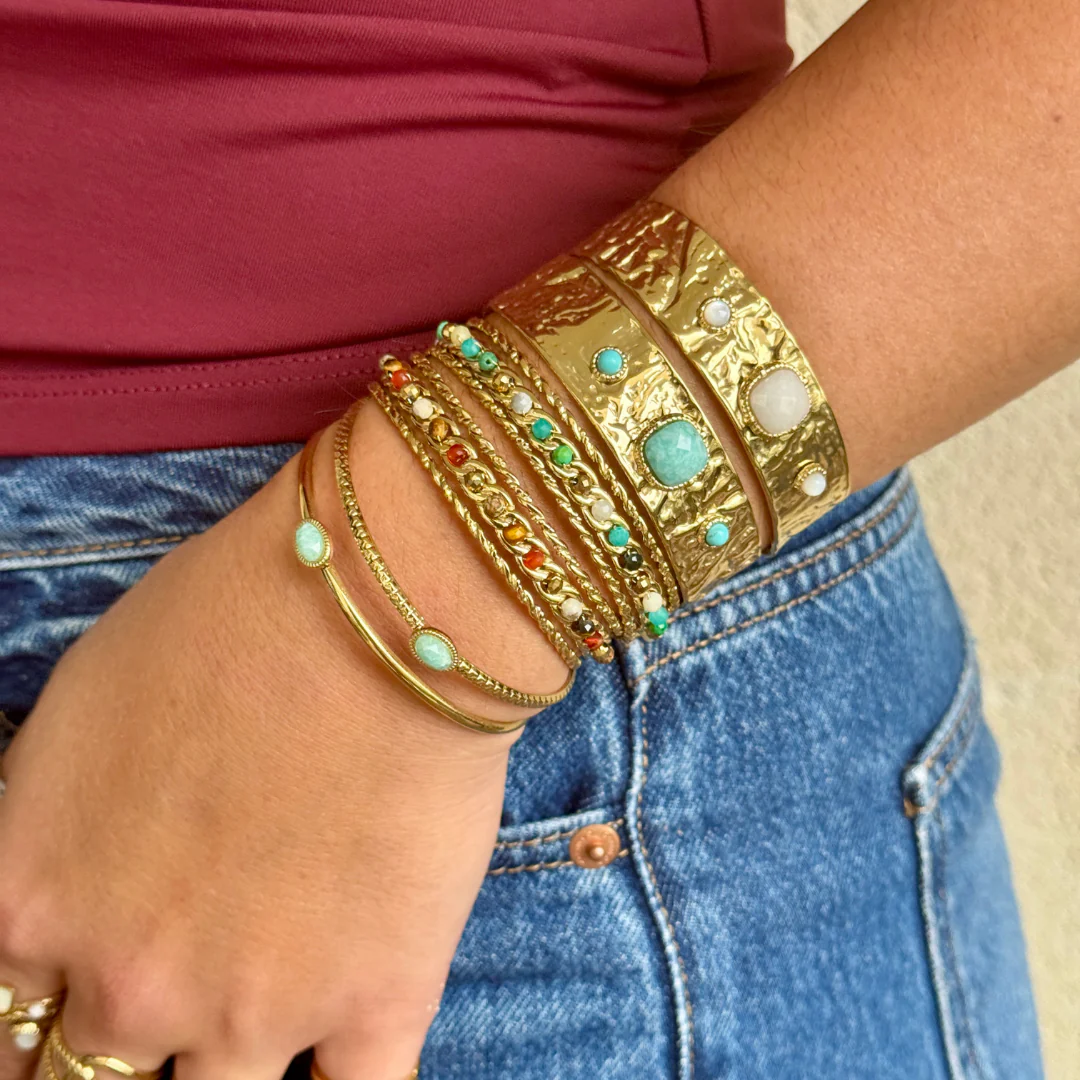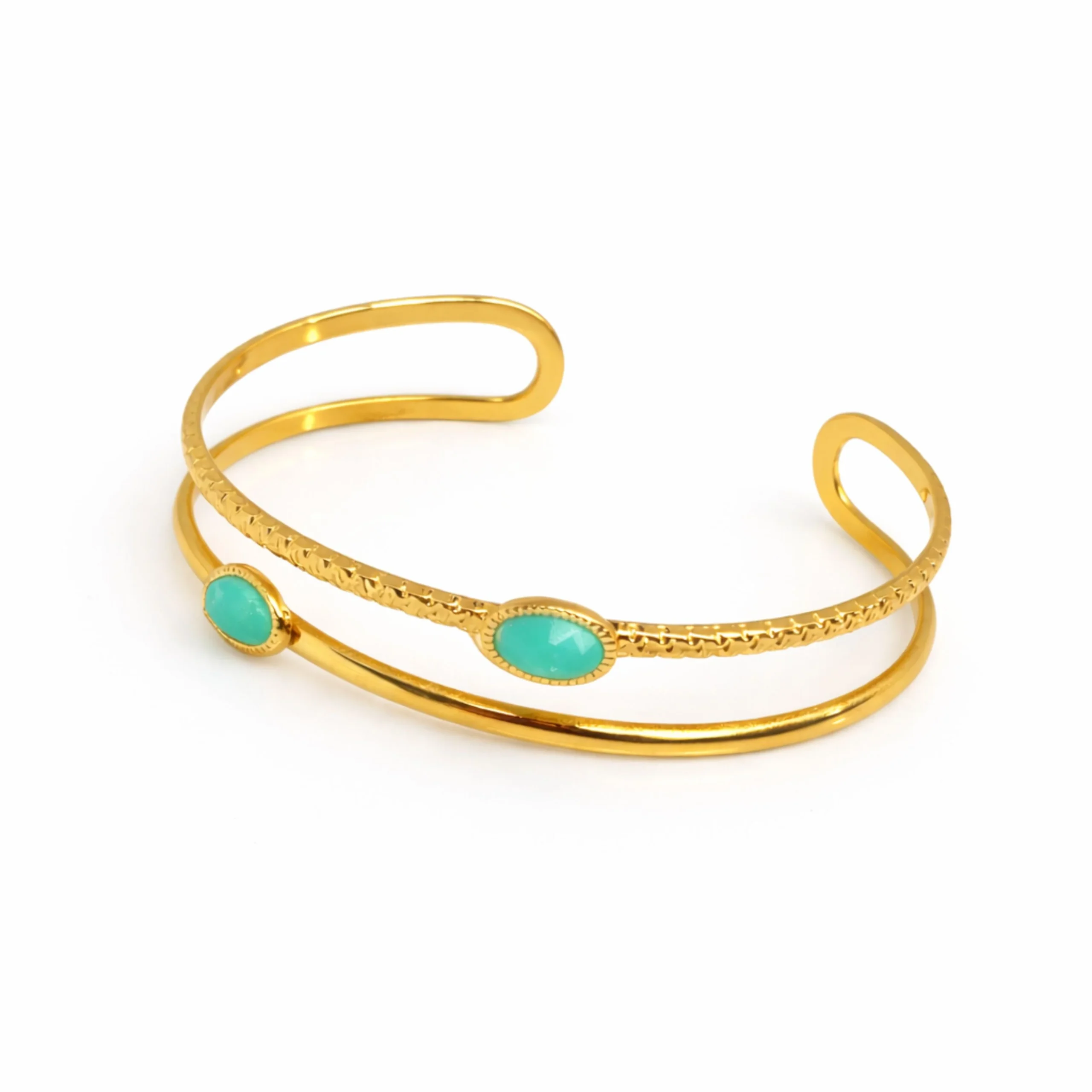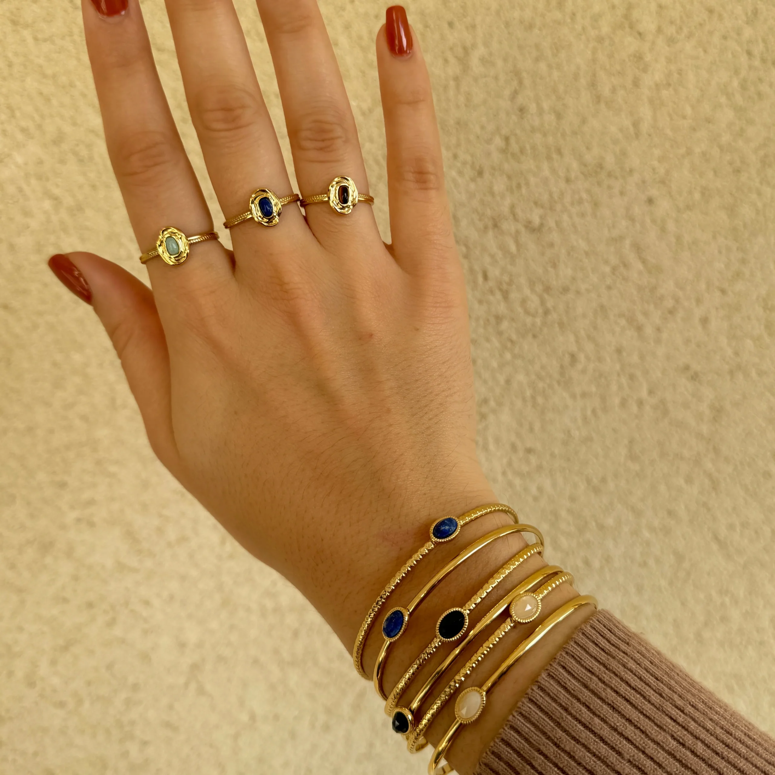 Des bijoux de haute qualité : Jonc en acier inoxydable et pierres naturelles