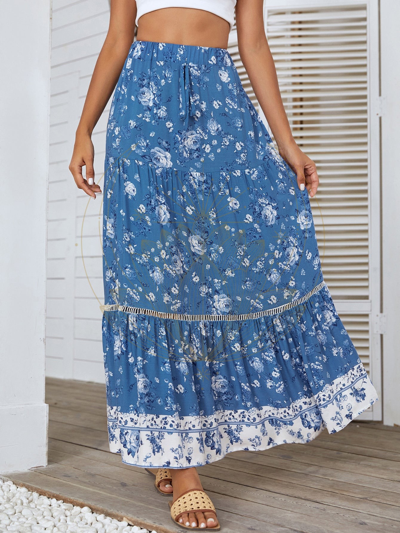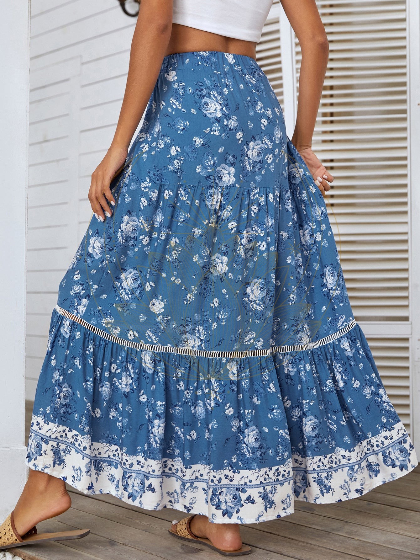 - Style : jupe longue, imprimés floraux, évasée