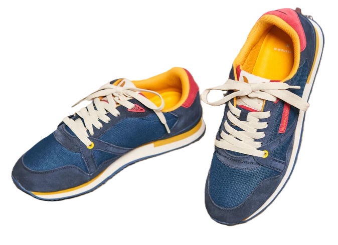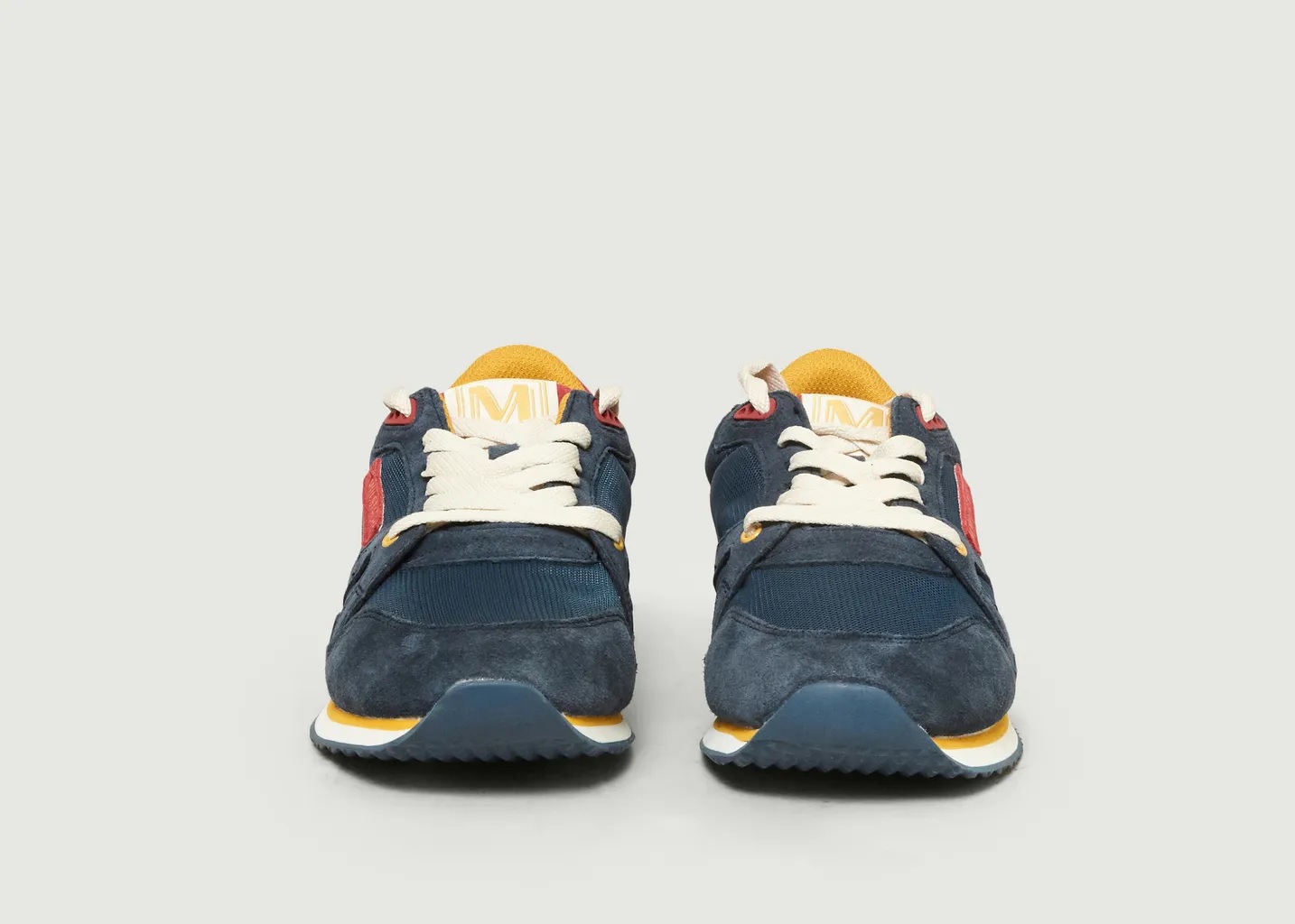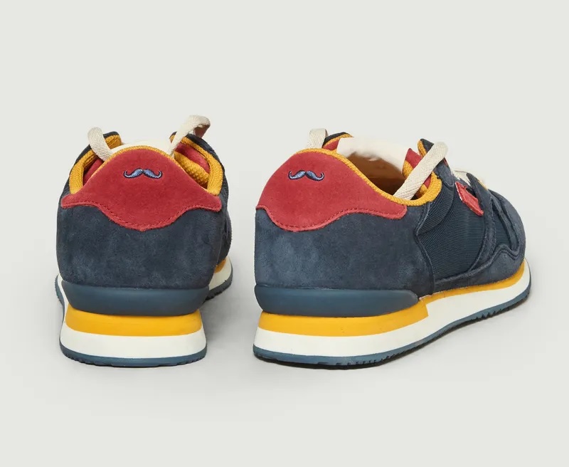 • Running en suède marine, rouge et moutarde
