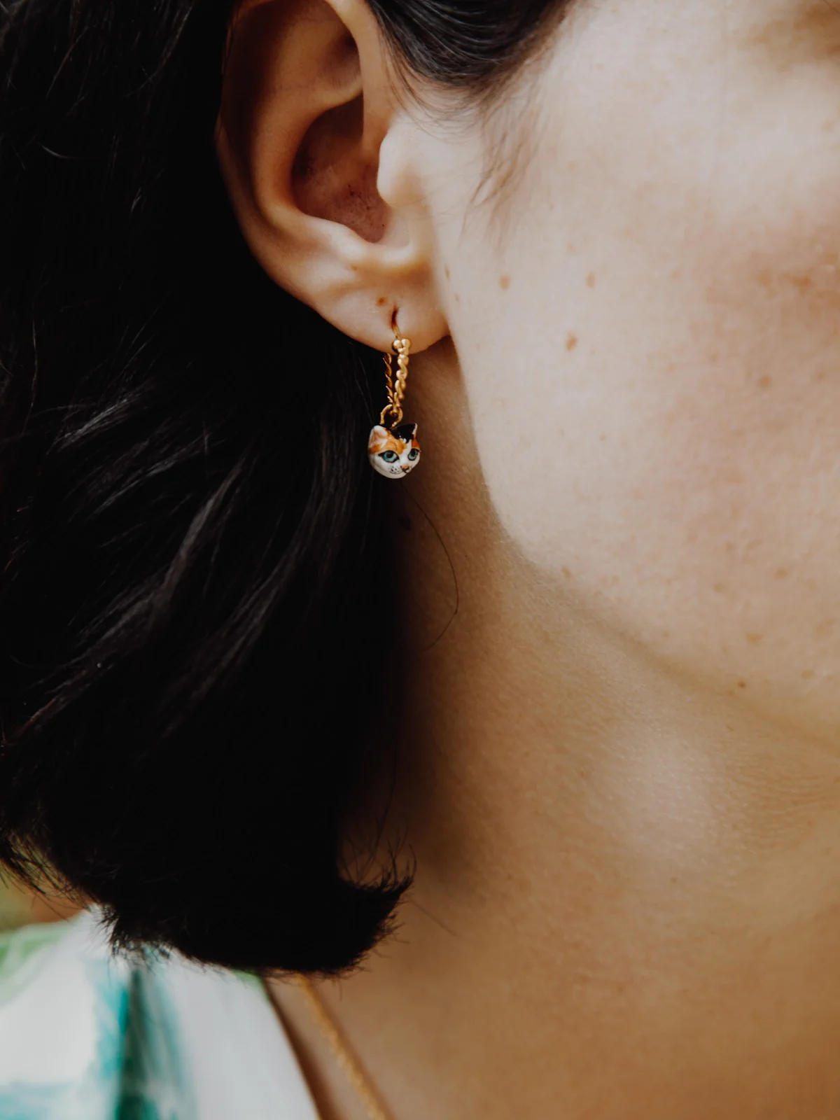 Boucle d’oreille en porcelaine et laiton doré à l’or fin.
