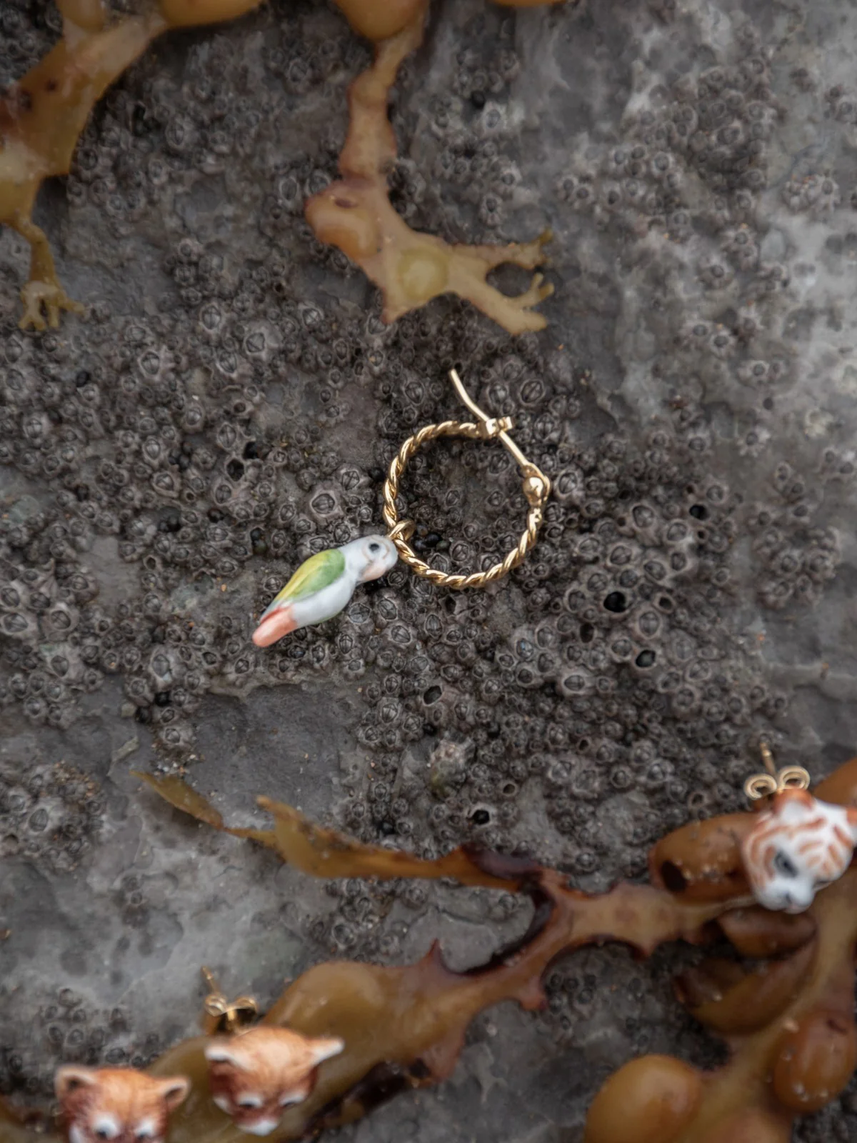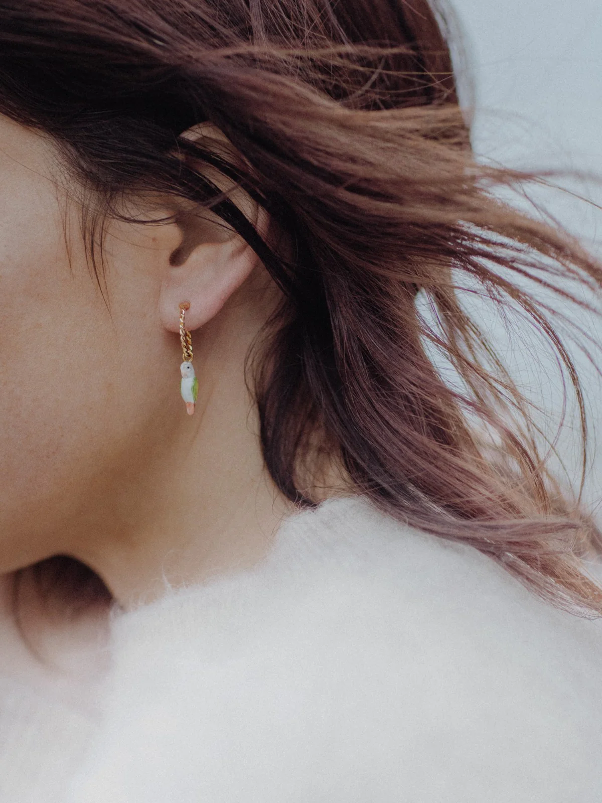 Boucle d’oreille en porcelaine et laiton doré à l’or fin.