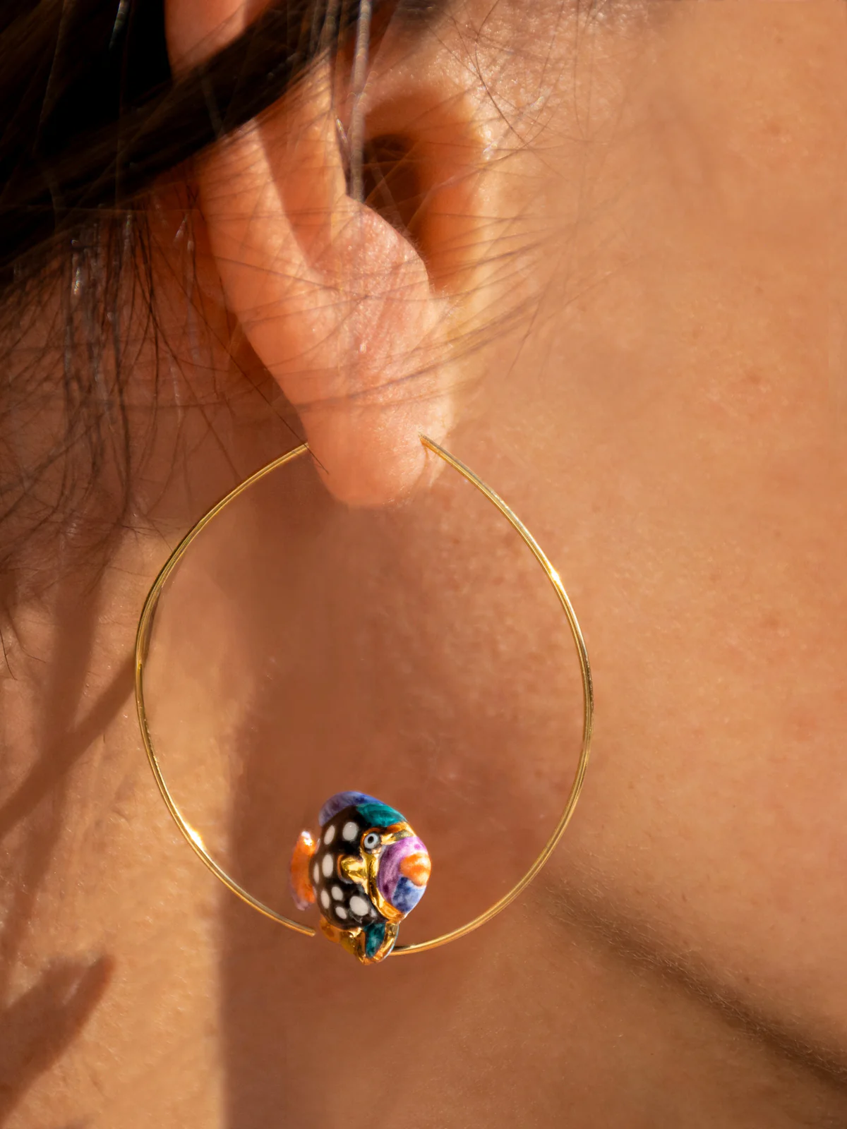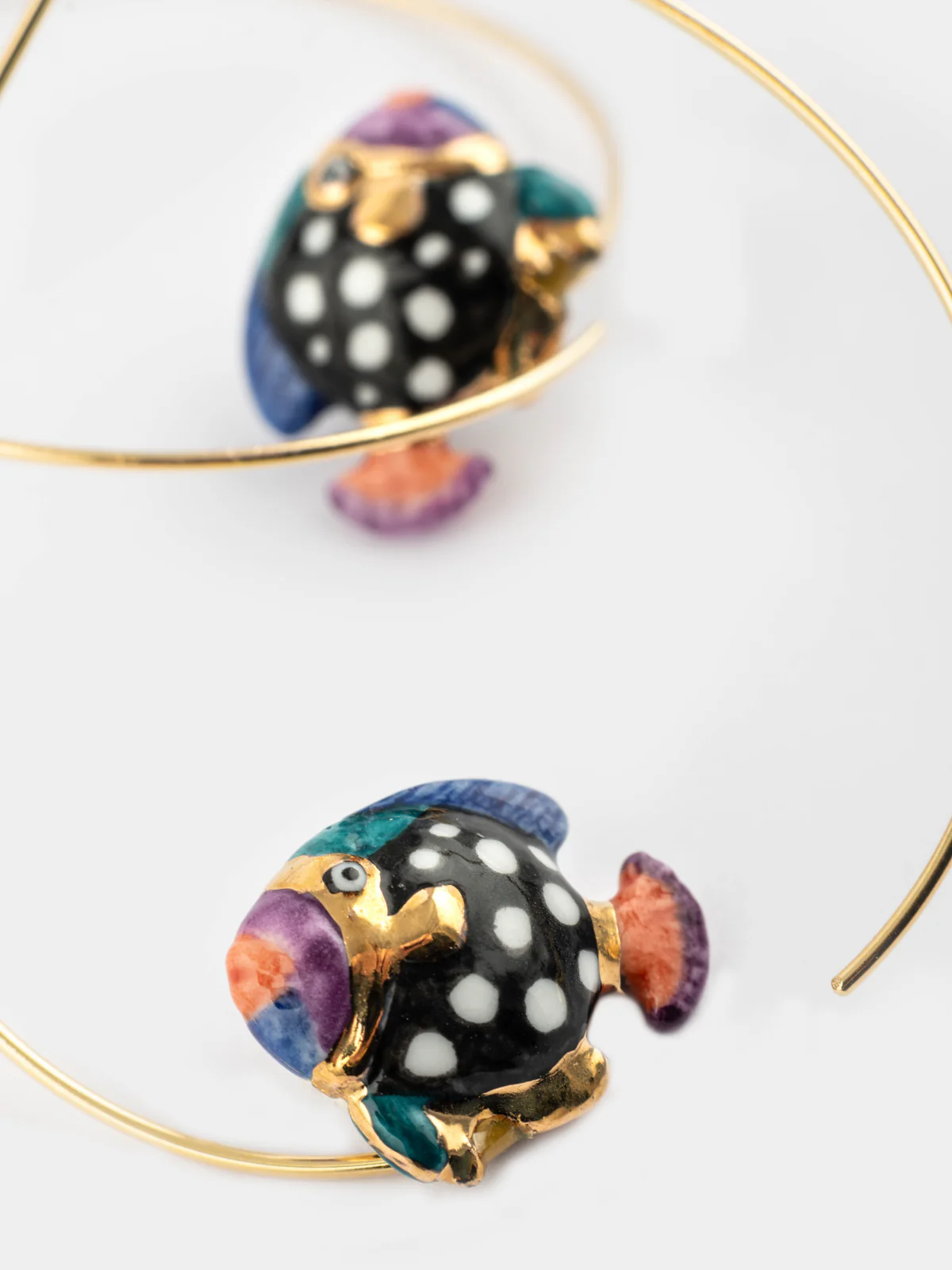 Boucles d’oreilles en porcelaine et laiton doré à l’or fin.