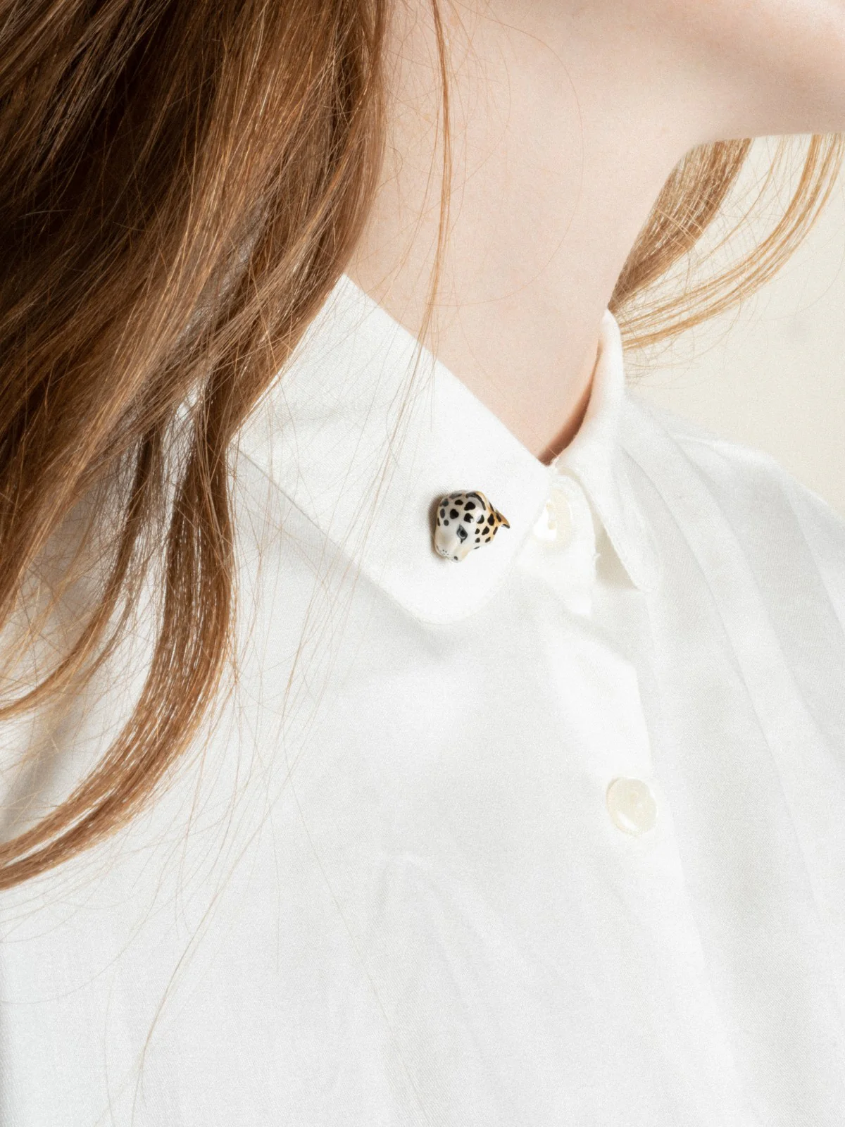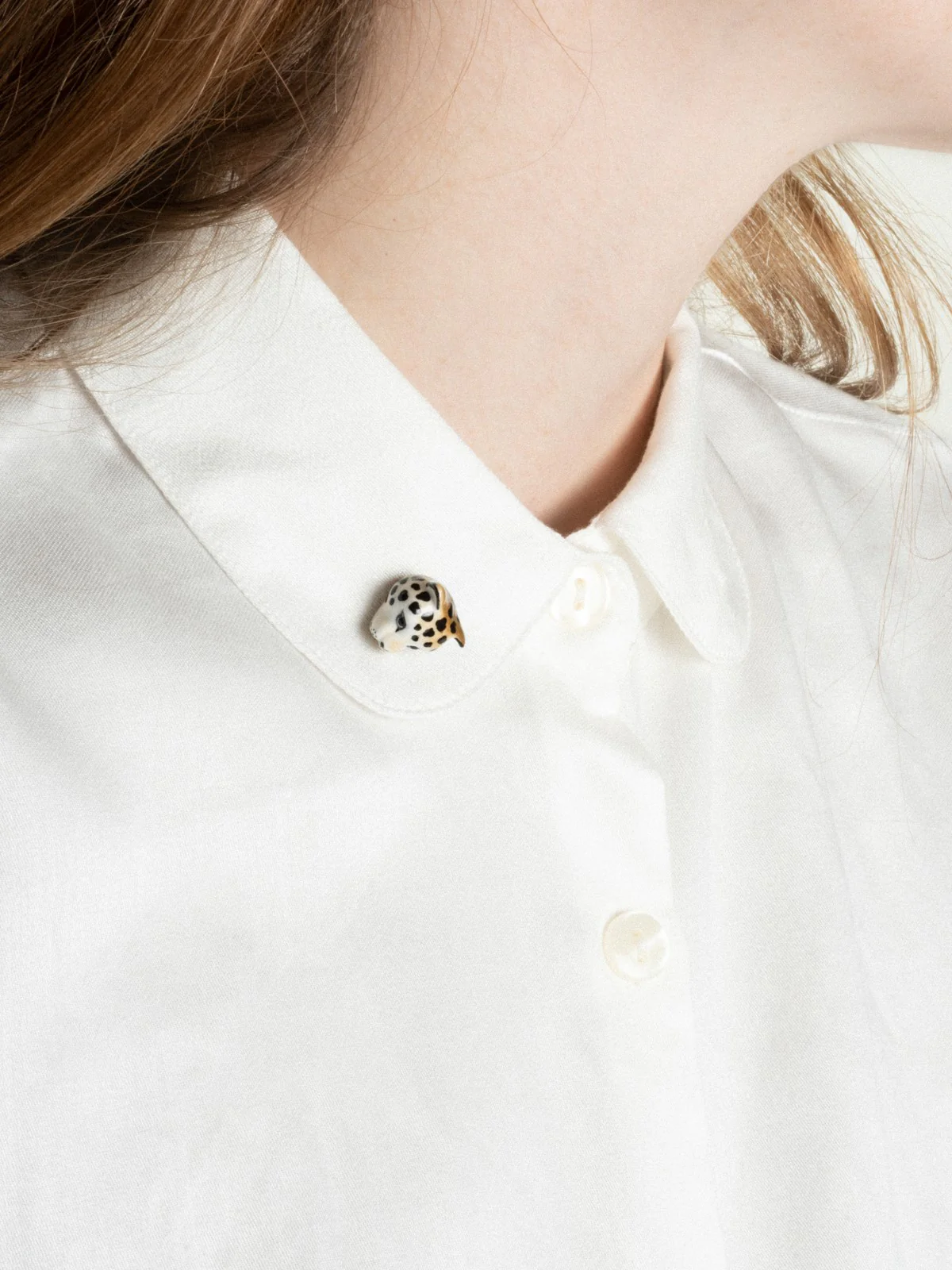 Pin’s en porcelaine et laiton doré.