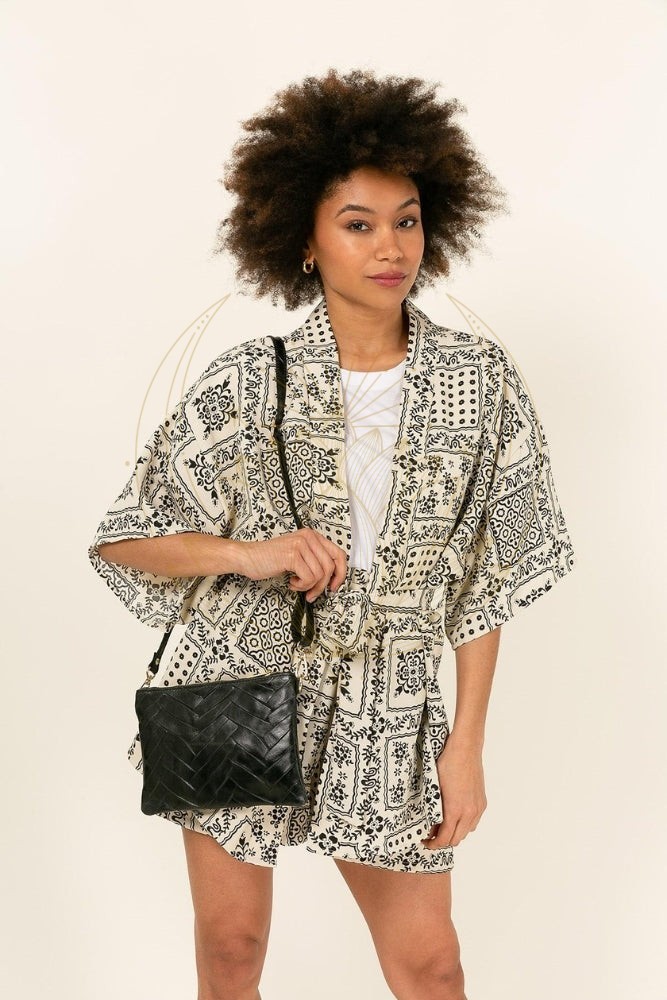 Pochette bohème en cuir avec motif tressé