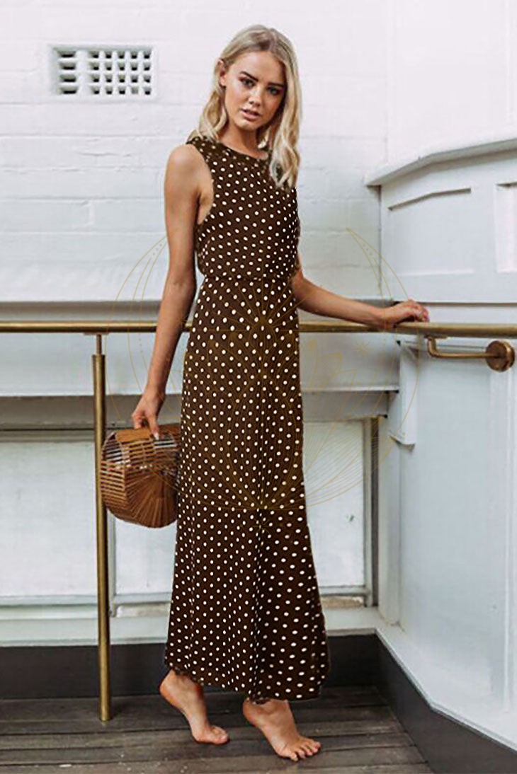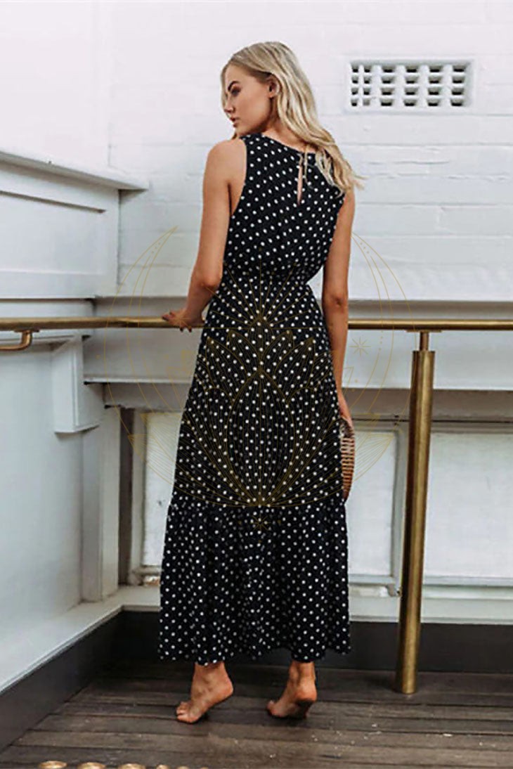Découvrez notre toute nouvelle robe estivale, la Robe Bohème à Pois. Idéale pour une journée d’été, cette charmante robe est parfaite que vous arpentiez un marché local ou que vous profitiez d’un pique-nique au parc. La coupe sans manches et la taille ajustable à cordon assurent fraîcheur et confort, tandis que la jupe légèrement évasée offre une silhouette avantageuse. Il vous suffit de la compléter avec une paire de sandales et un chapeau de soleil pour être prête !
