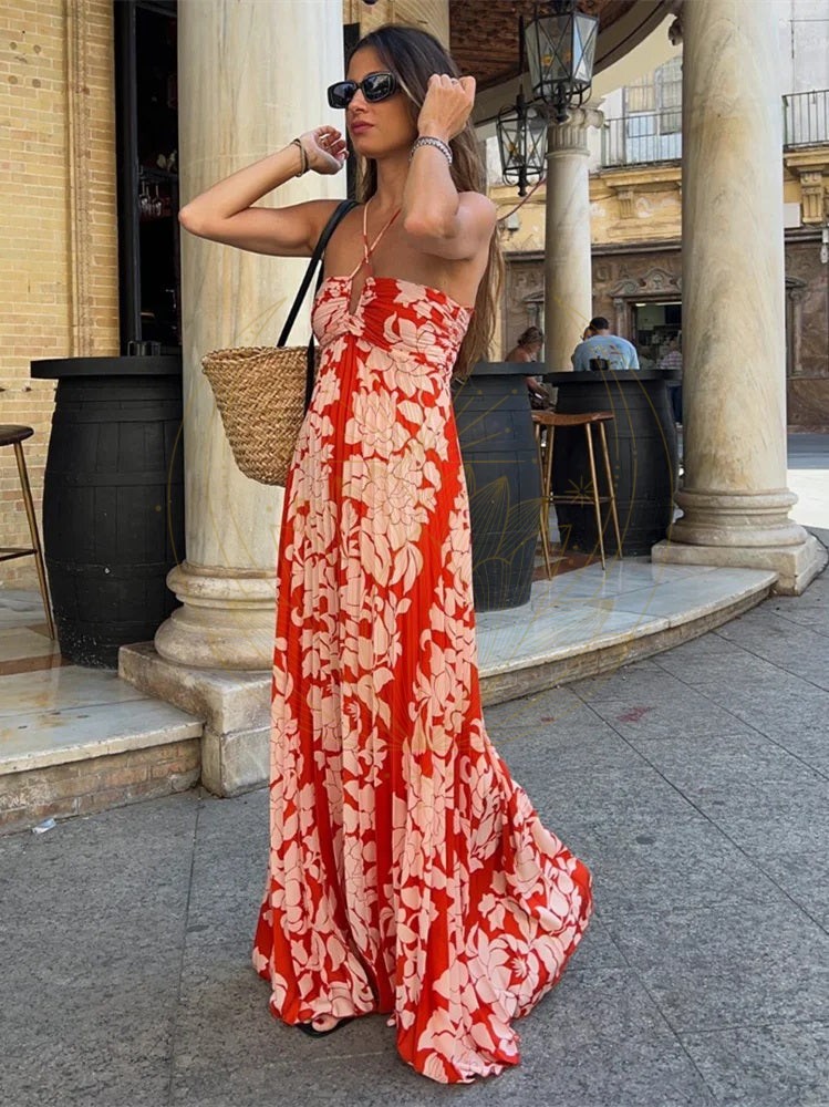 Cette splendide robe maxi à bretelles est l’option idéale pour la saison printemps-été.