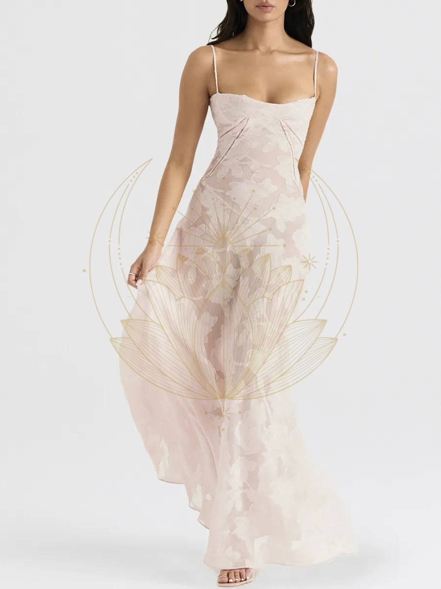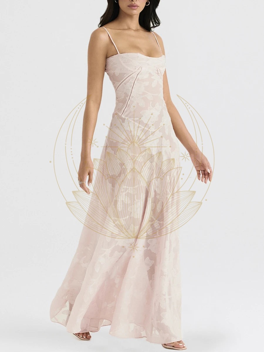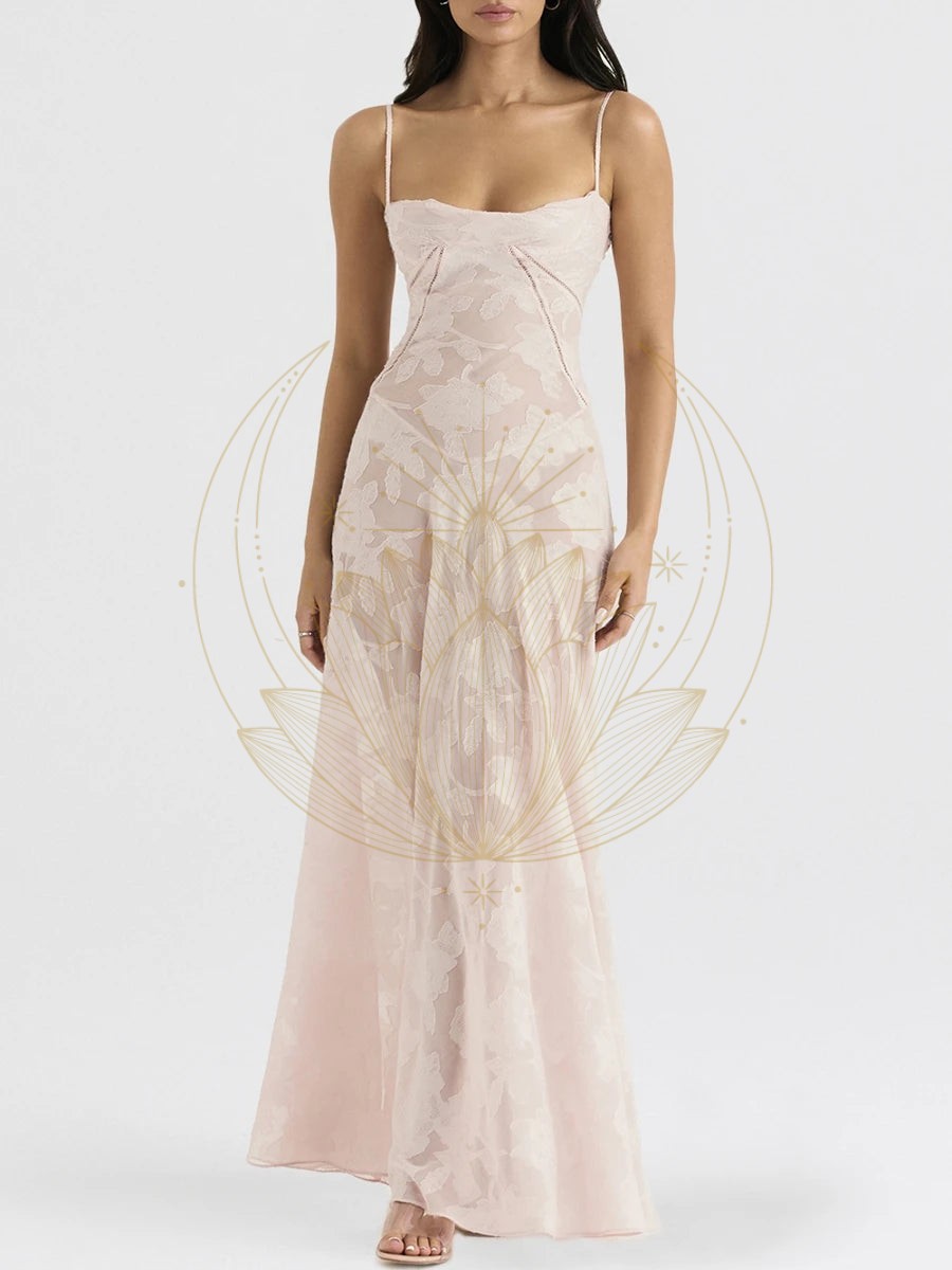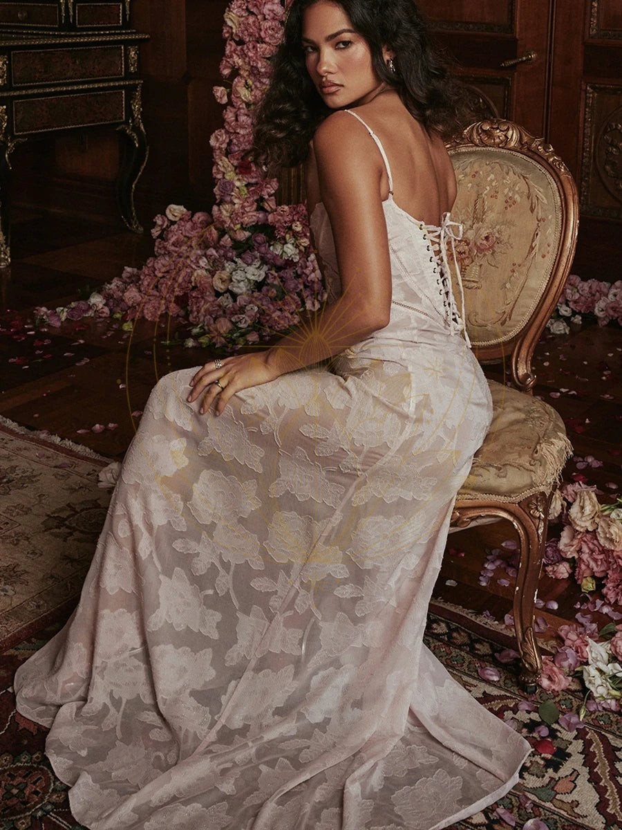 Robe longue bustier à bretelles : Élégance raffinée avec dentelle florale et détails lacés