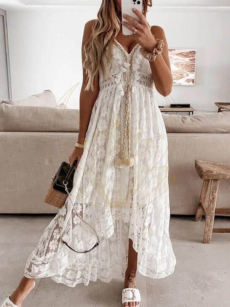 Robe longue bohème en dentelle blanche : Style intemporel et romantique pour une allure bohème chic