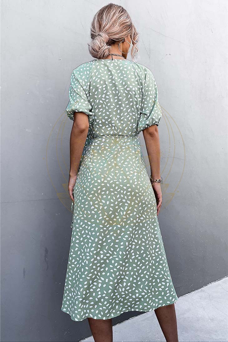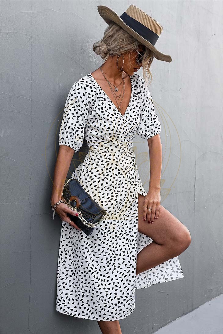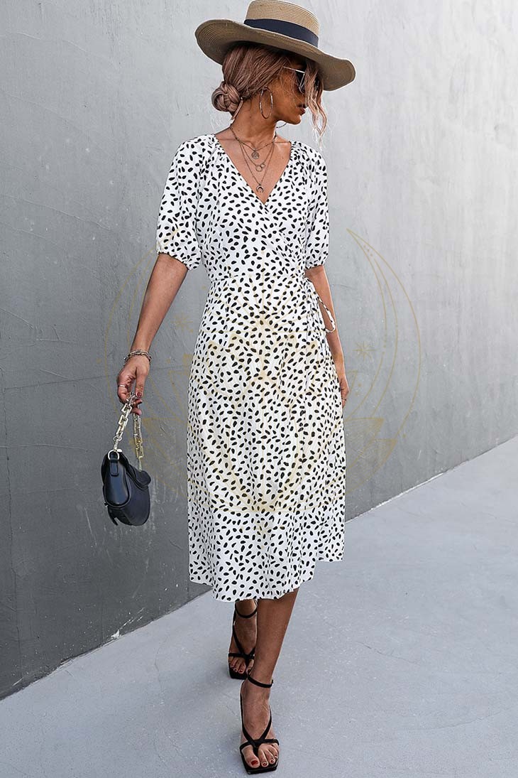 Cette Ravissante Robe Longue Bohème est parfaite pour toutes vos sorties estivales ! Avec son tissu en mousseline légère et son imprimé floral à pois, elle sublimera votre silhouette. Ses manches mi-longues et son col en V ajoutent une touche d’élégance. La jupe portefeuille, à la fois flatteuse et pratique, en fera une pièce maîtresse de votre dressing.