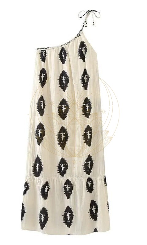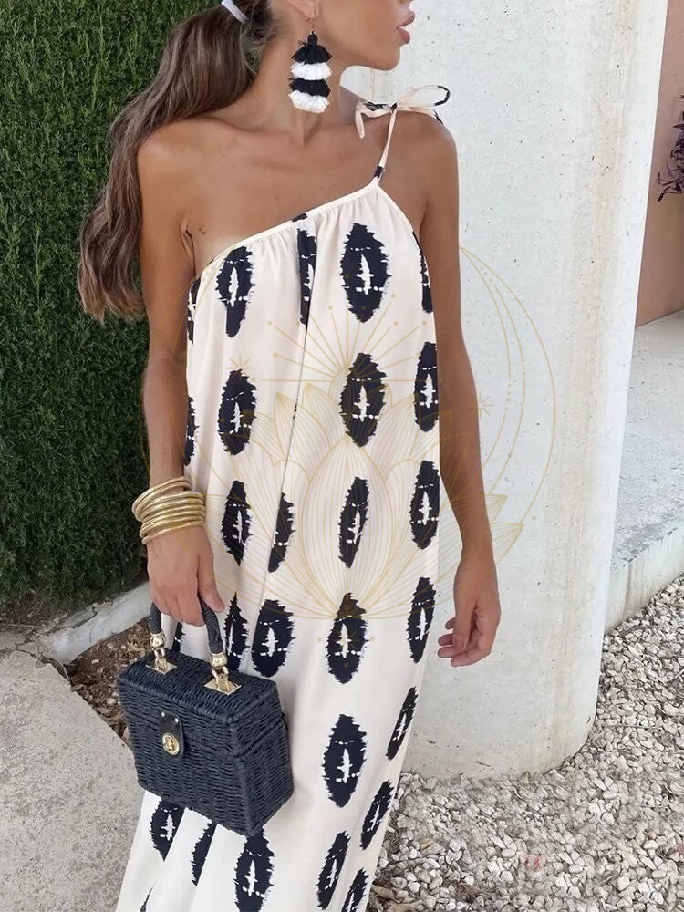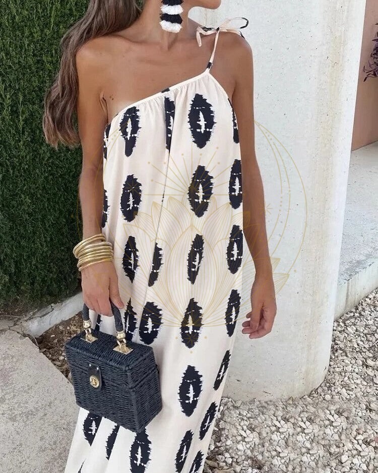 Découvrez le Charme Éternel de Notre Robe Imprimée Plissée, dos Nu à une Épaule !