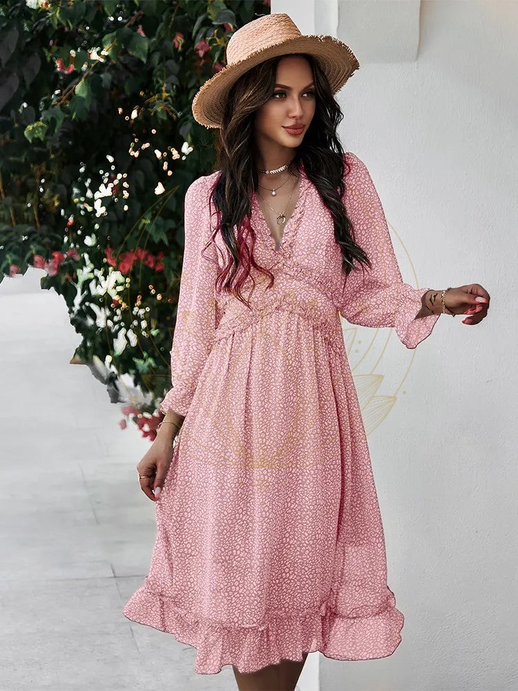 Robe mi-longue rose à imprimé floral : Douceur printanière avec une touche féminine florale pour une allure délicate et chic.