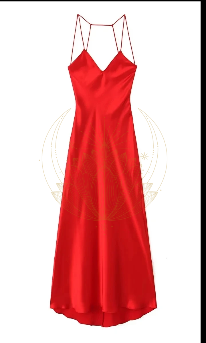 Laissez-vous séduire par notre robe longue en satin rouge : une pièce élégante pensée pour captiver les cœurs et éveiller l’imagination.