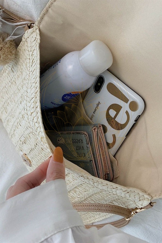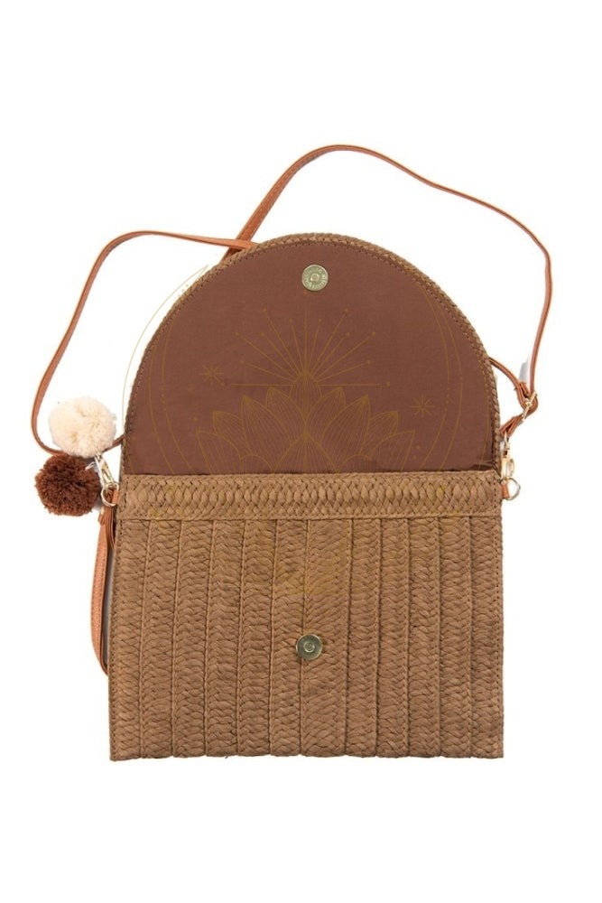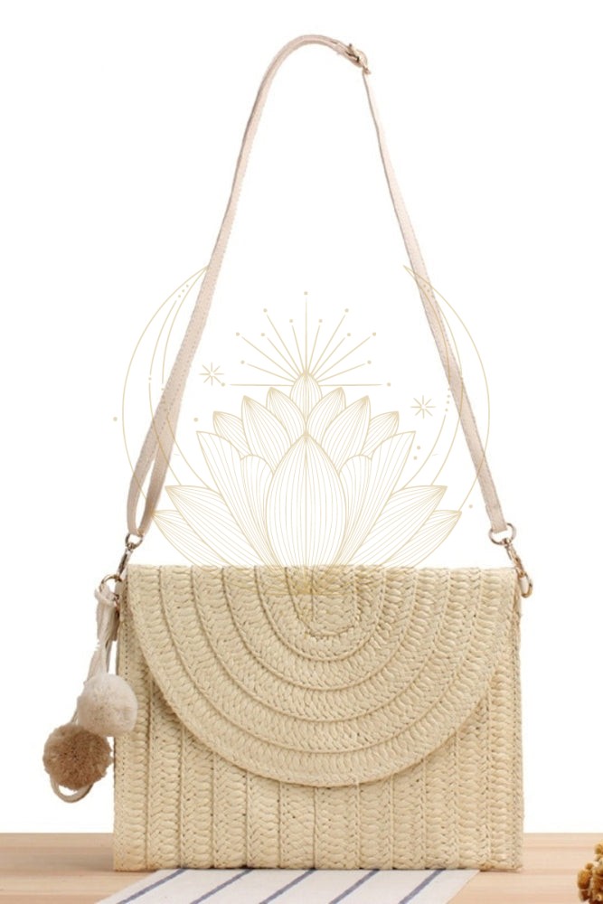 Ce sac en paille fait une entrée remarquée dans notre garde-robe estivale pour un look bohème chic ! Nous adorons ce sac pochette style bohème grâce à sa forme enveloppe, sa bandoulière amovible avec mousquetons et ses jolis pompons. Le rabat est sécurisé par un bouton magnétique et l’intérieur comporte une poche plaquée idéale pour vos clés.