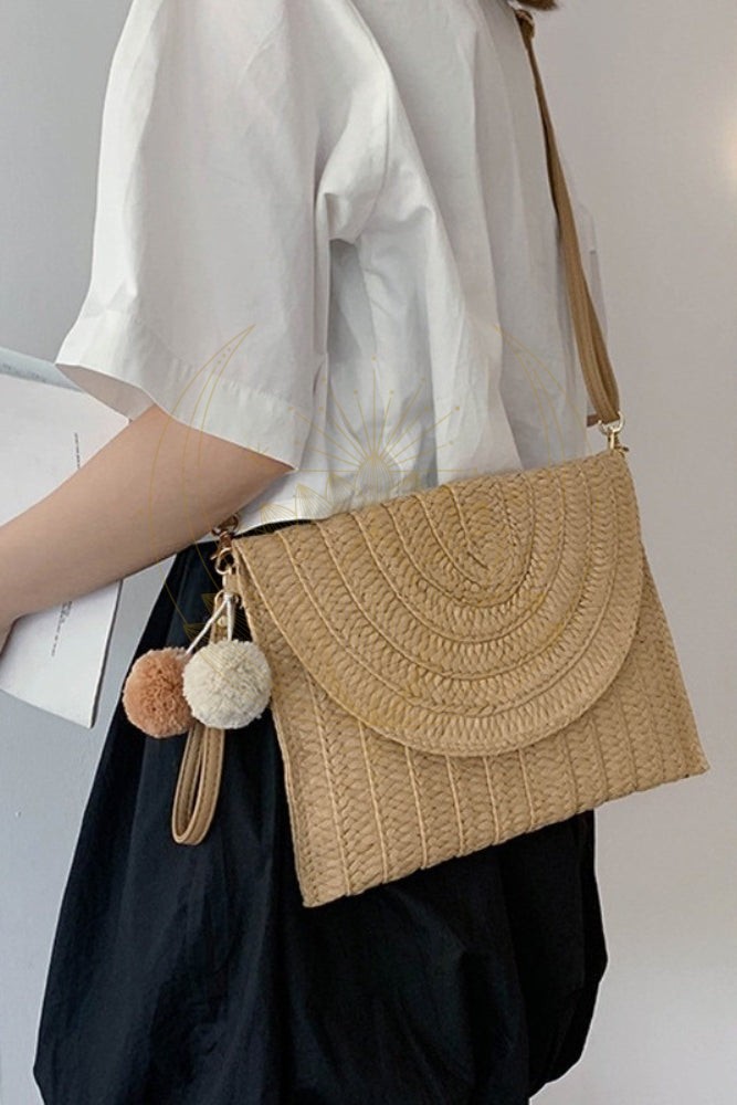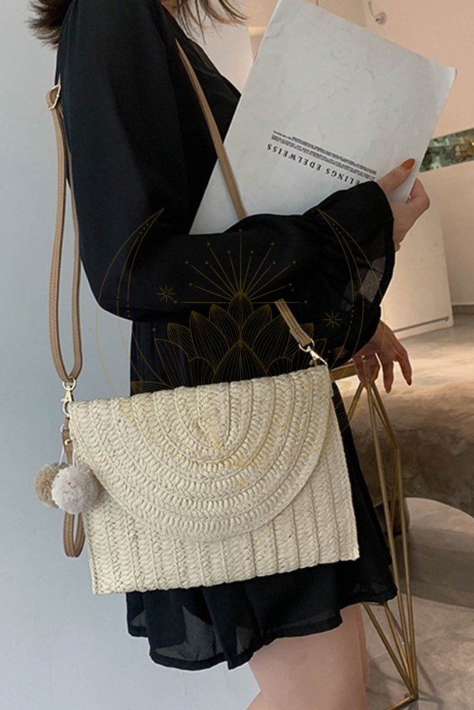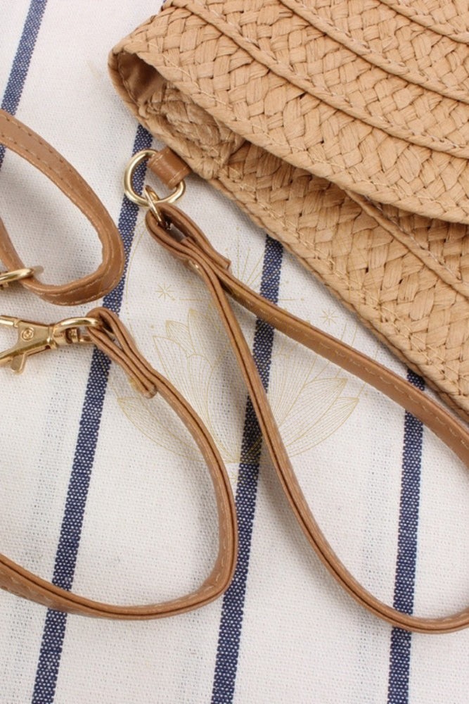 Avec sa bandoulière amovible, ce sac pochette en paille de style bohème se plie à toutes vos envies et tous vos événements : porté à l’épaule pour libérer vos mains en journée ou à la main pour un look sophistiqué en soirée.