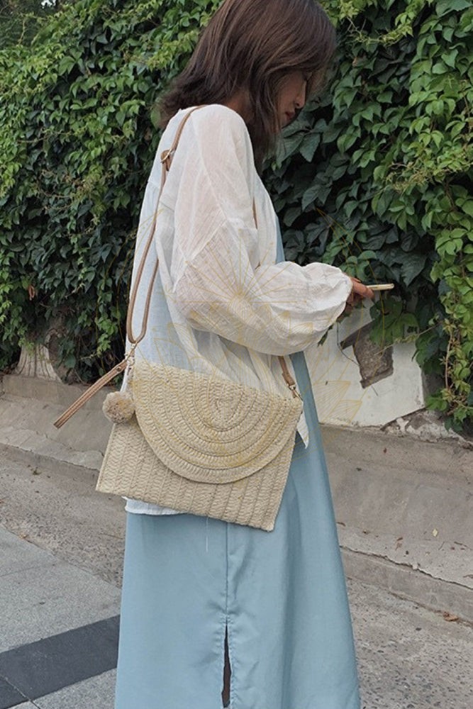 Sac pochette style bohème en paille tissée