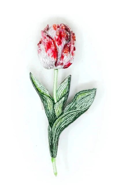 Délicatement fabriquées à la main, les broches sont le résultat d’un travail proche de l’art, proche du cœur. Inspirée des textures et des couleurs naturelles , cette broche tulipe est conçue pour apporter une touche de dynamisme à toutes vos tenues, qu’elles soient habillées ou décontractées. Elle est magnifiquement brodée à la main et incrustée de perles de métal et de verre qui captent la lumière. Chaque broche est confectionnée avec une finesse de travail de broderie exceptionnelle et présente des motifs originaux. Ces broches sont produites en petits lots par des artisans, ce qui ajoute à leur caractère unique. Les légères variations dans la broderie, la taille, la forme et la couleur font partie de l’artisanat fait à la main, offrant à chaque broche une touche individuelle. Parfaites pour ajouter une touche d’originalité à n’importe quelle tenue, ces broches sont des accessoires brodées de qualité à ne pas manquer. Trovelore est une belle histoire entre l’art et le textile. Un ensemble de tissus, couleurs et broderies forme le cœur d’un design moderne inspiré par la nature. Les broches Trovelore sont fabriquées de façon artisanale et toujours dans un esprit de grande qualité.